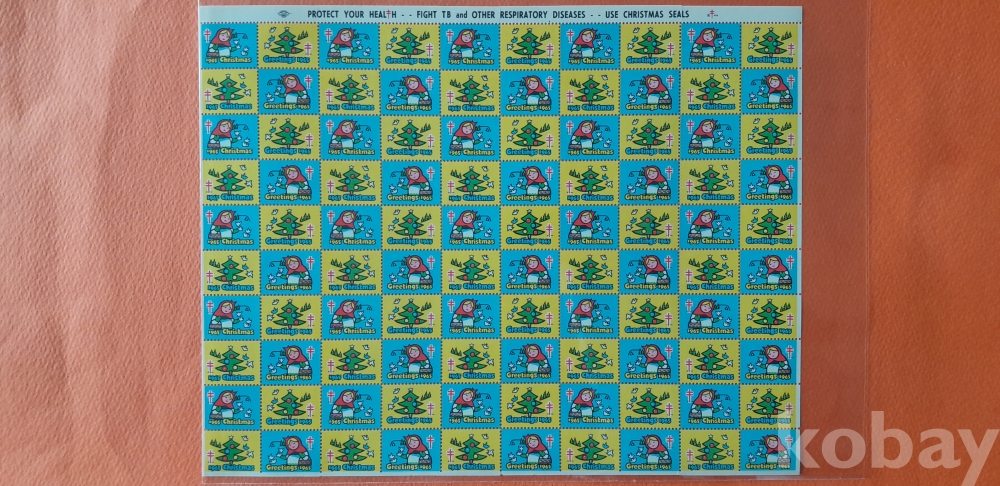 1965년 미국 크리스마스 씰 100매 전지 입니다.