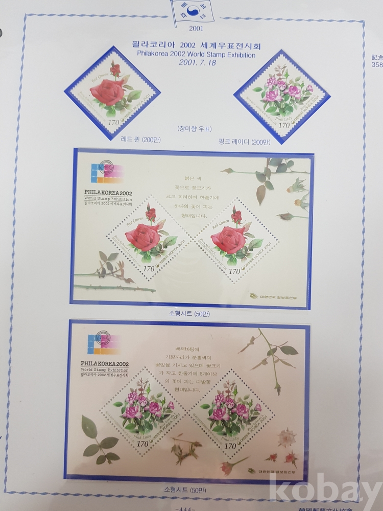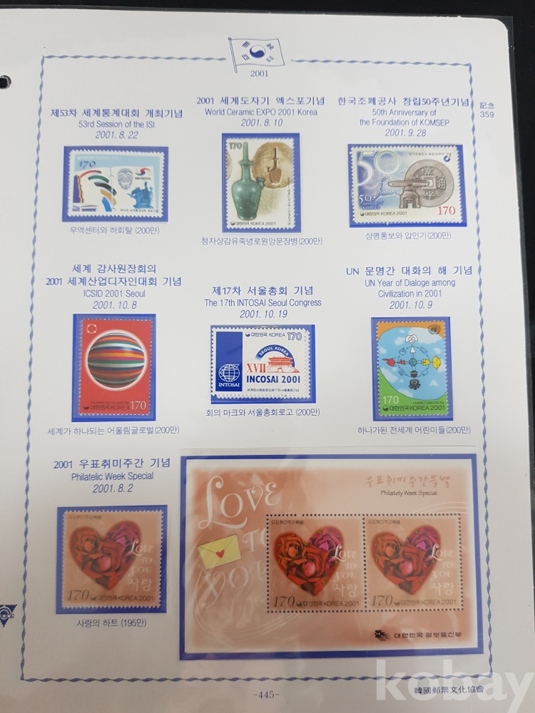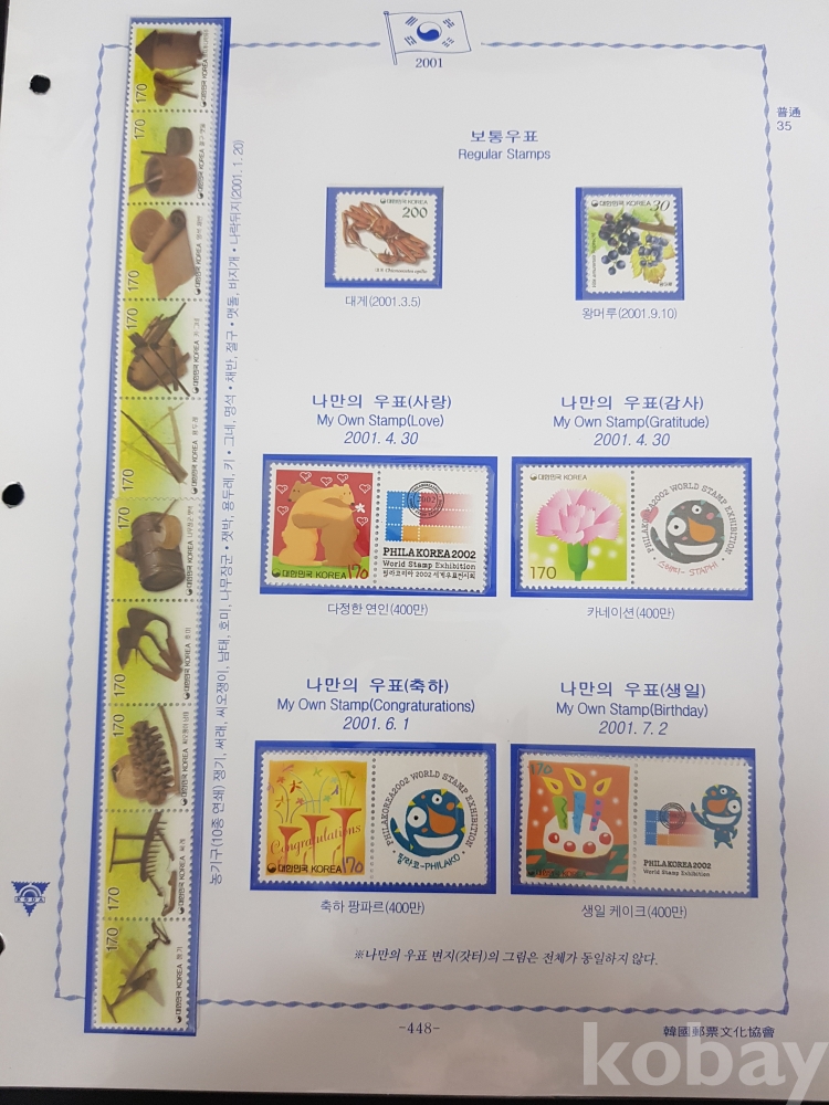 - 2000년~2002년 한국우표앨범 10번 우표책 앨범해체분 / 한국우표문화협회