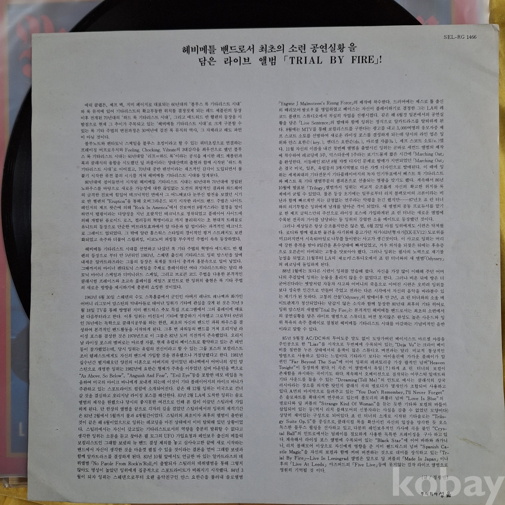 | 자켓상태 | EX : 약간의 마모, 모서리 찢김 존재 | 음반상태 | EX : 재생에 영향 없는 가벼운 기스 존재 | 발매정보 | 알수없음 | 가사지여부 | 무 |