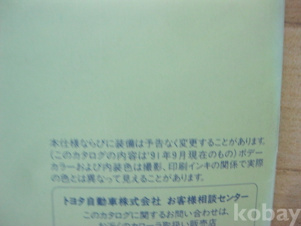 80-90년대 자동차 일어판 팜플렛,,,,코롤라 ,,도요다자동차,,,91년
