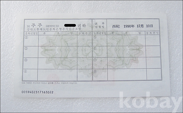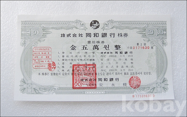 동화은행 50,000원 실물 종이 주식 (812)