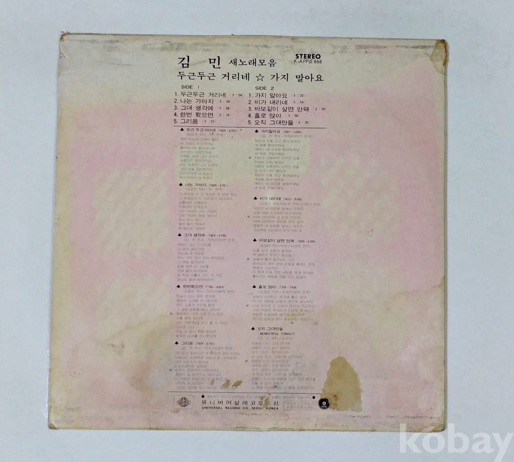 EX : 약간의 마모, 모서리 찢김 존재 음반상태