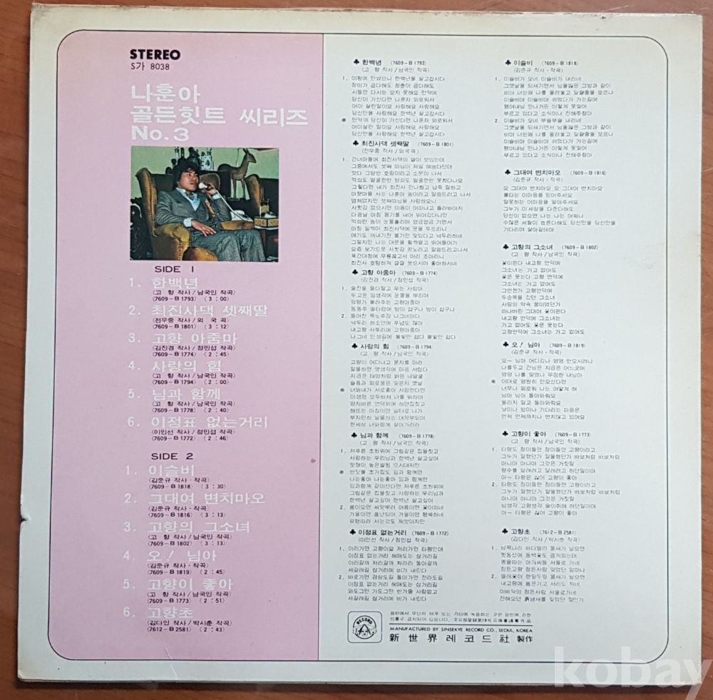 1979년 가수 나훈아 골든 힛트 씨리즈 No.3 음반 LP