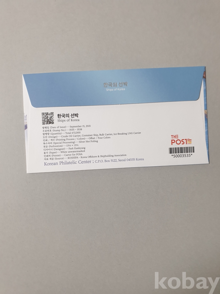 한국의 선박 우표박물관 초일봉투(2021.9.15)