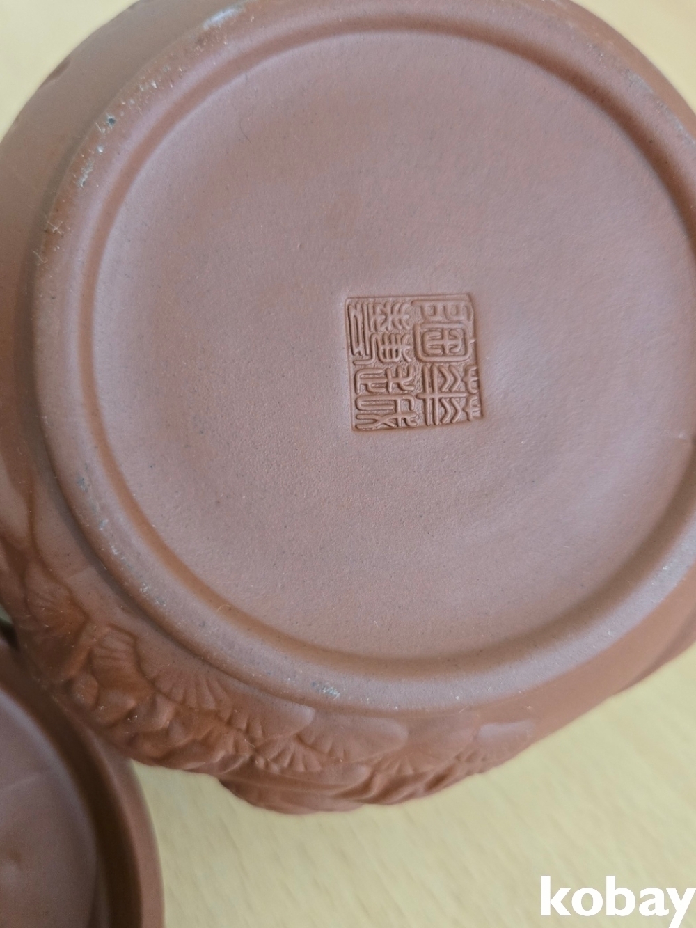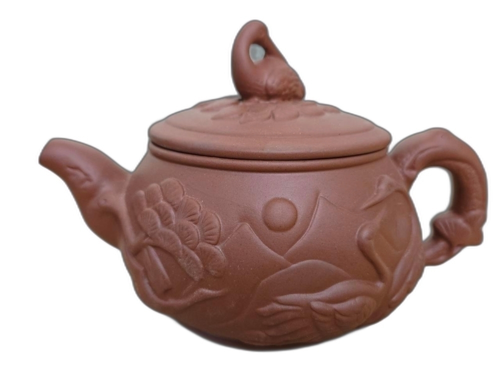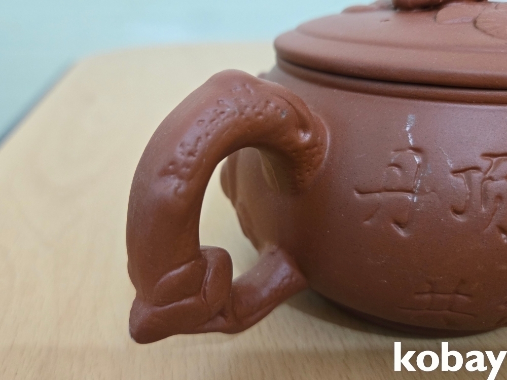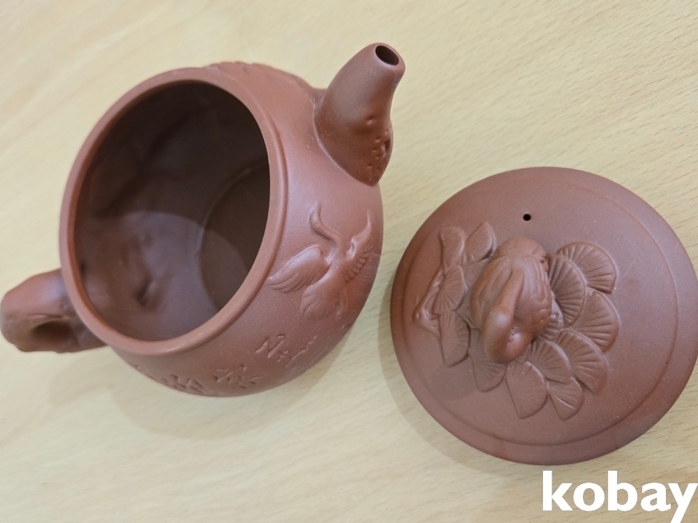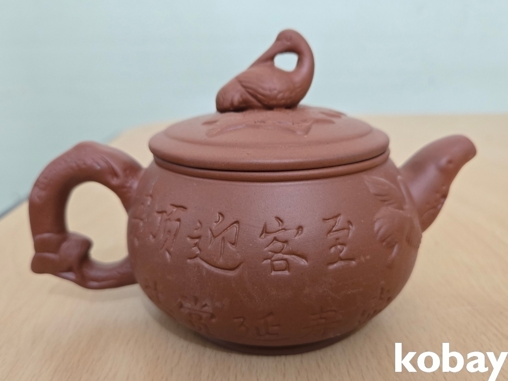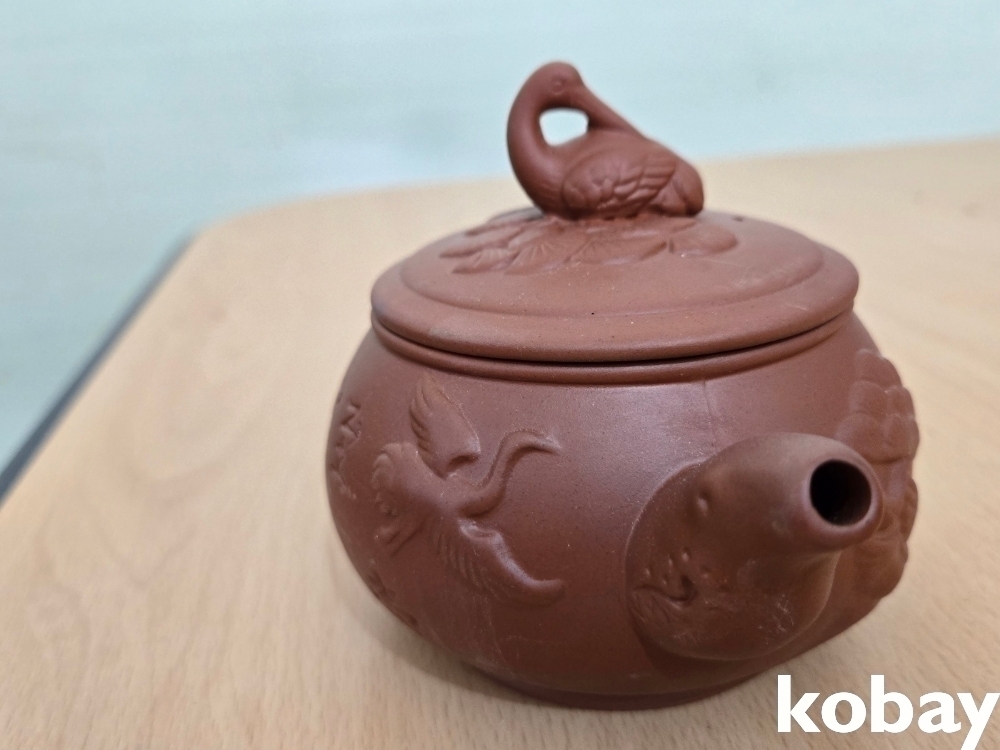 학 모양 손잡이가 있는 자사 주전자 입니다.