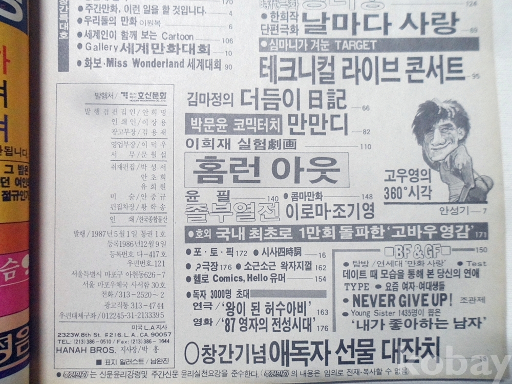 만화잡지 창간호~주간만화 87년 이현세 이두호 등 만화 수록