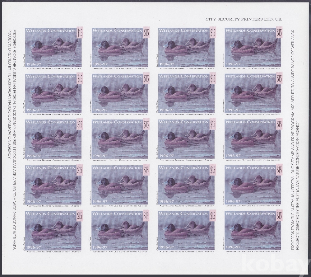 (하늘천) 오스트레일리아 1996년 오리, 습지 보존, 자연, 멀티 컬러 프루프