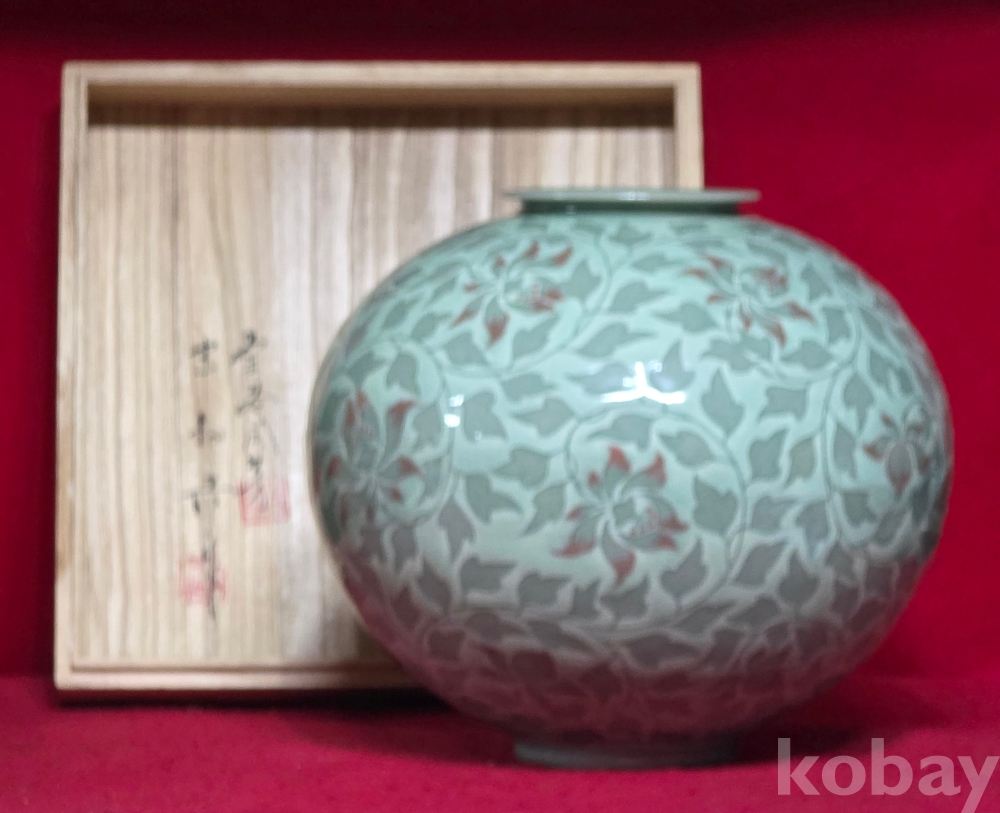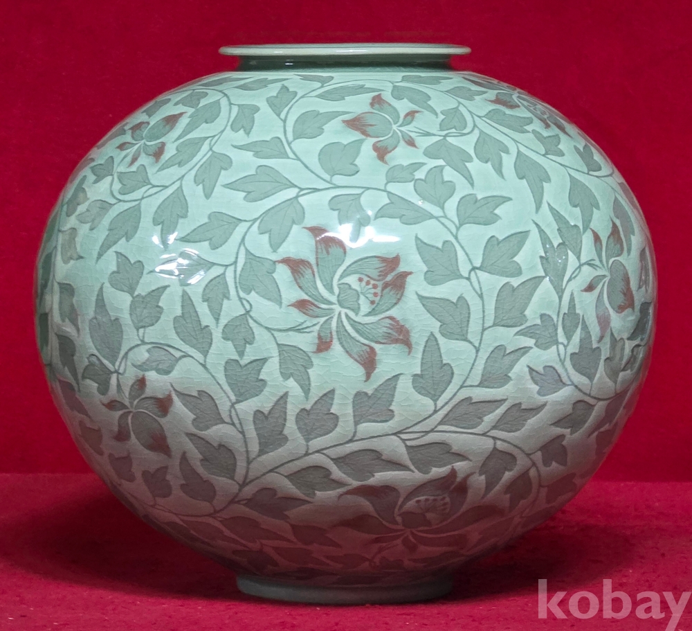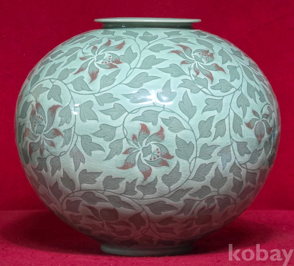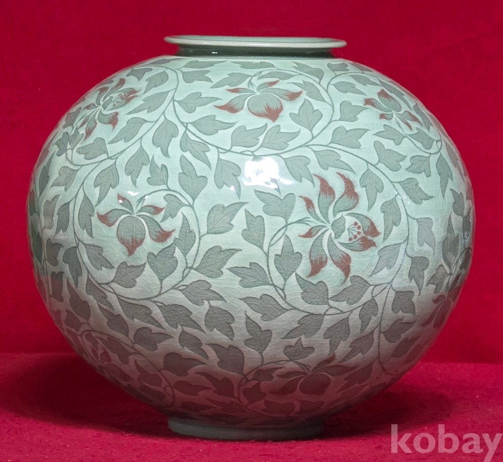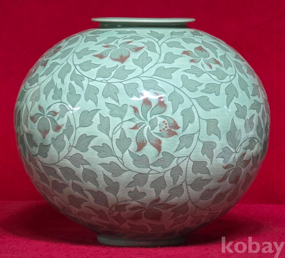 송남 신상호 선생님의 청자 진사채 초화문 호 입니다