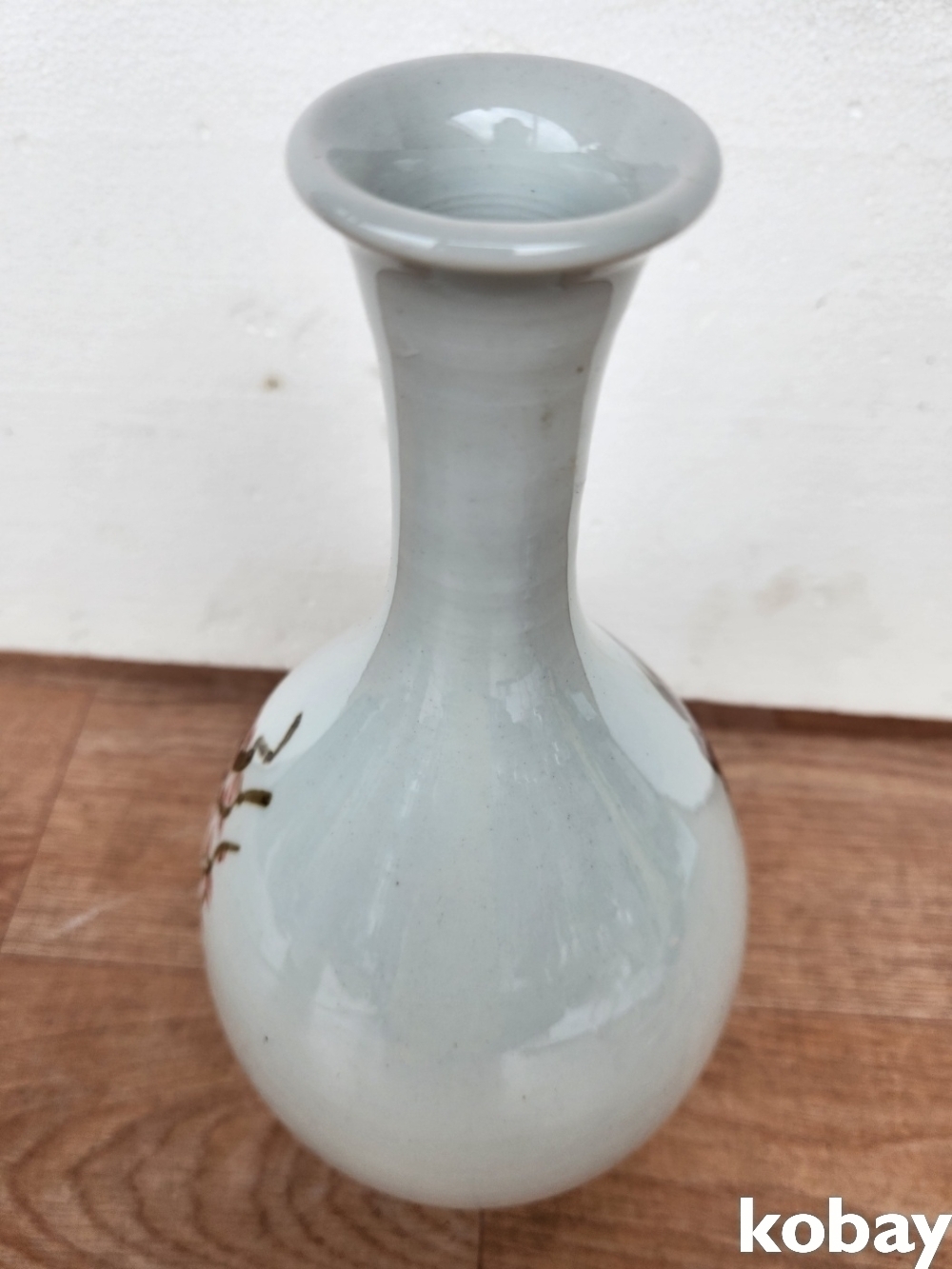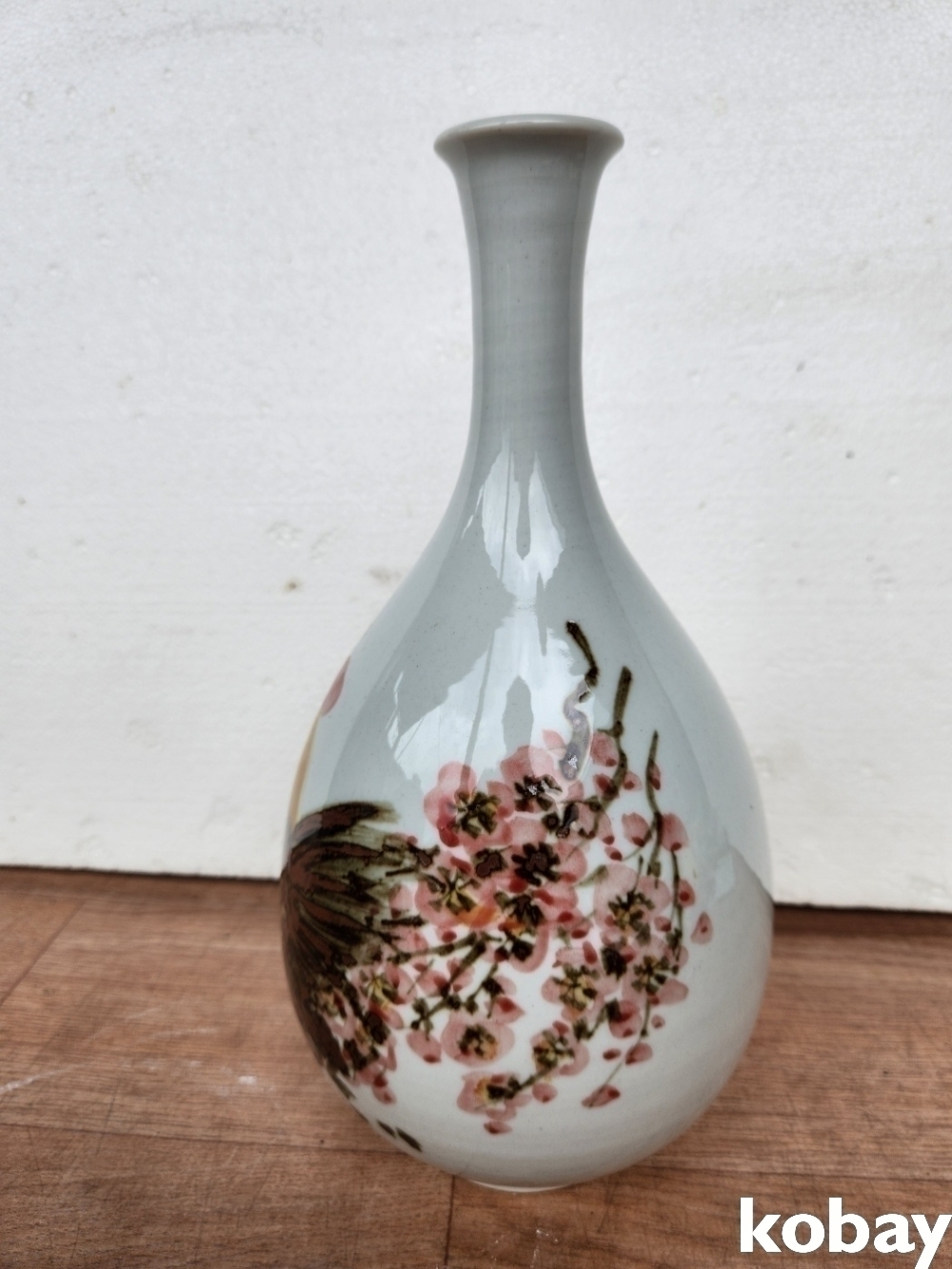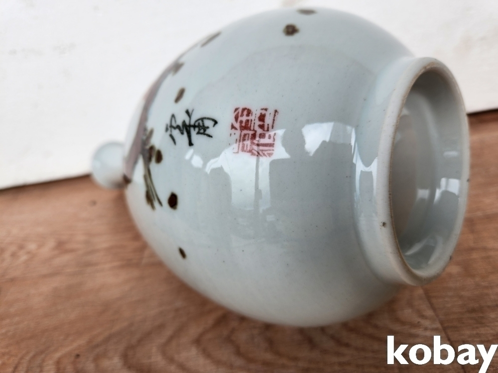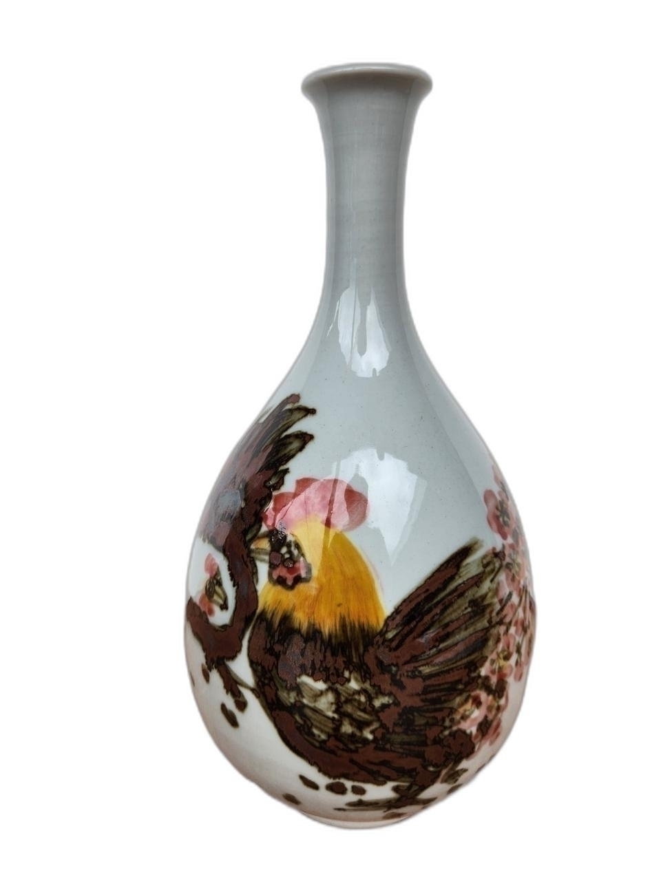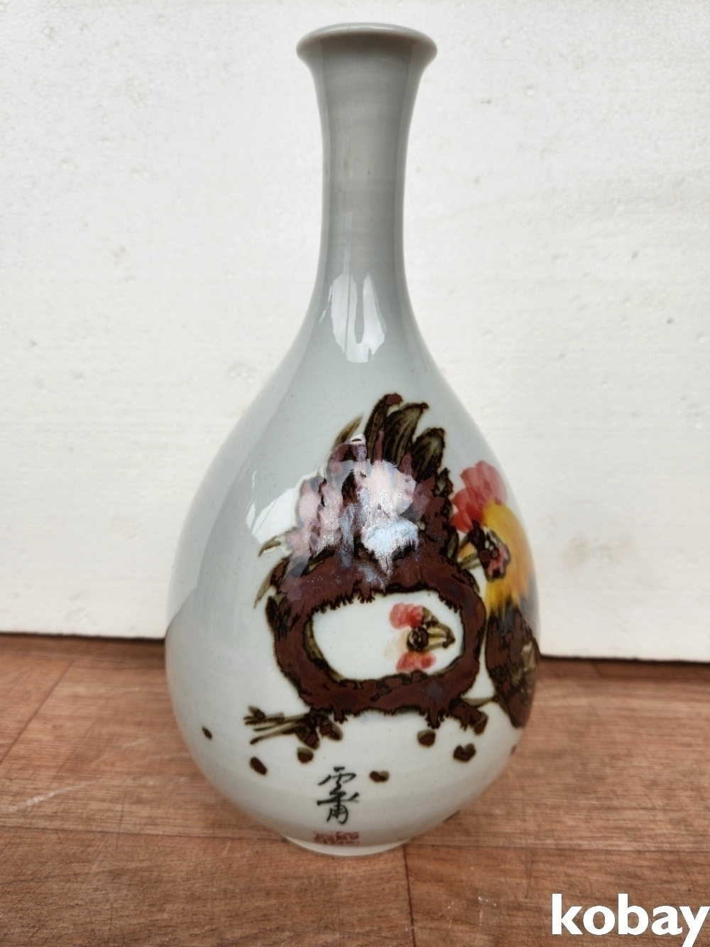 운보 닭 그림이 표현된 주병 도자기 입니다.