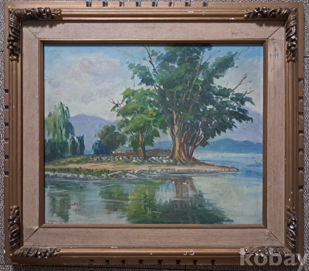 1세대 서양화가 이준배 화백 양수리풍경 1991년 8호 작품