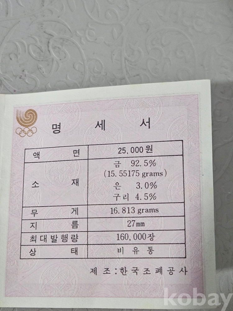 ㅡ오랫동안 소중히 보관해온 물건이며, 주화 상태는 물론이고 오리지널 케이스와 종이 보증서(제3차 E02665번)까지 완벽하게 보존된 풀세트입니다.