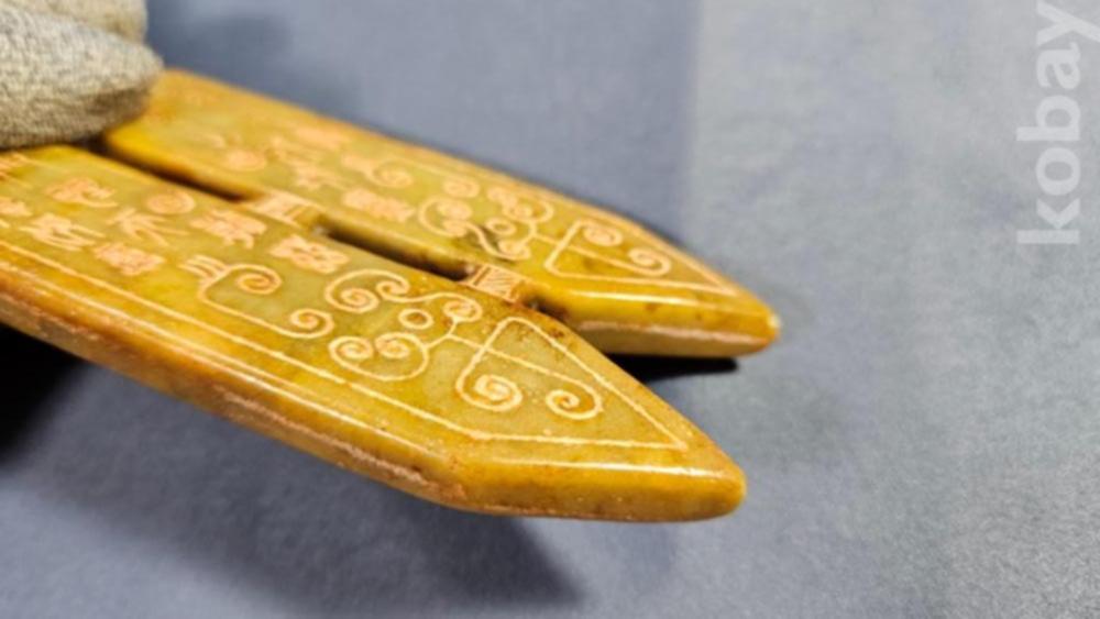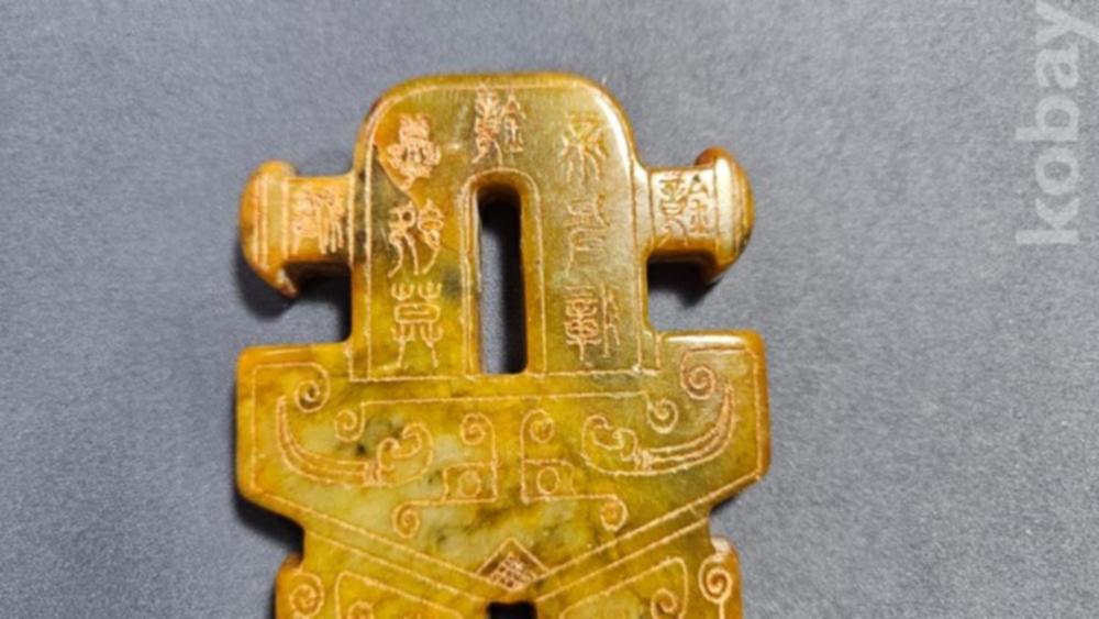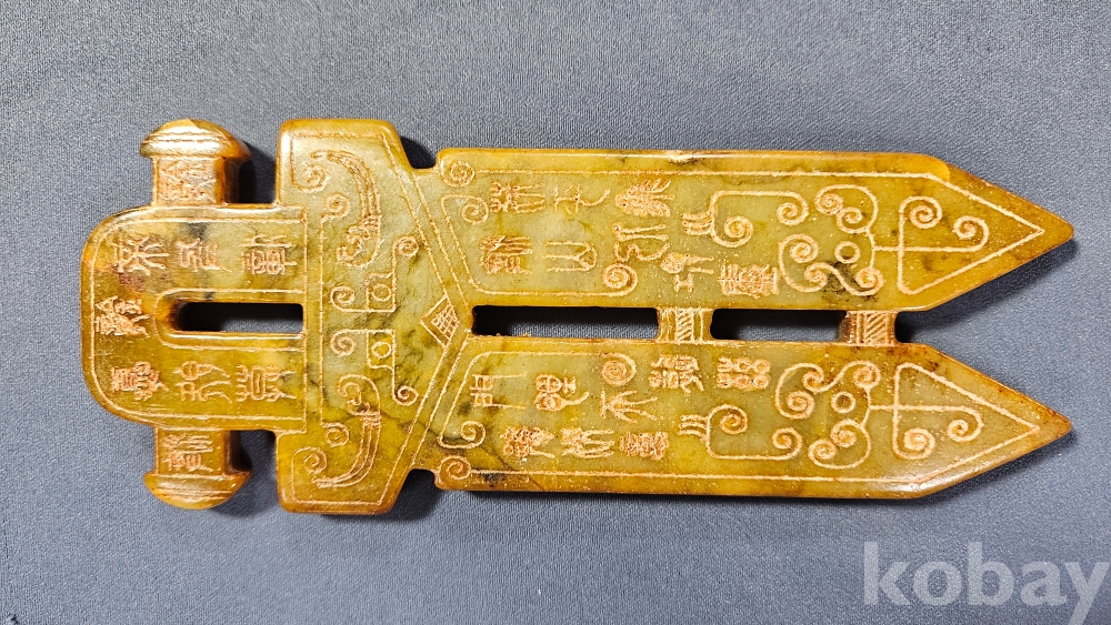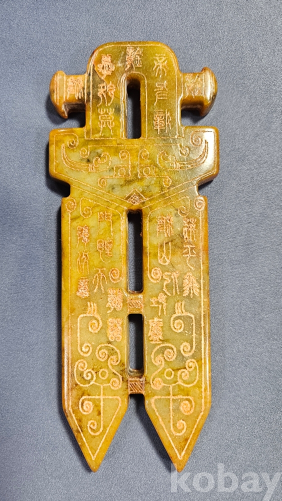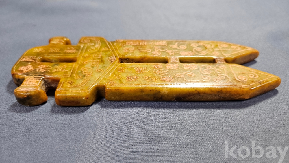 앞뒤로 특이한 문양이 새겨져있는 옥돌재질