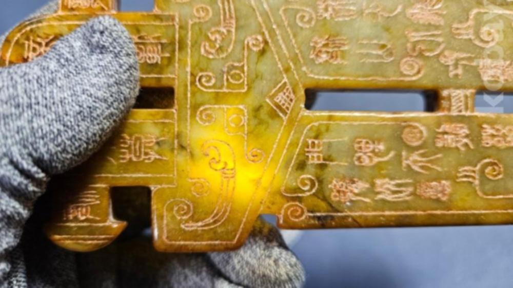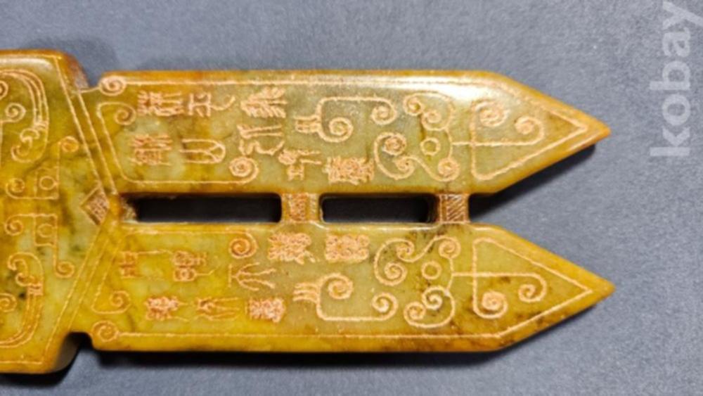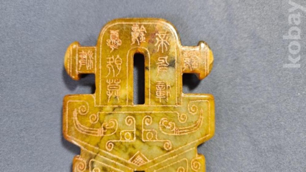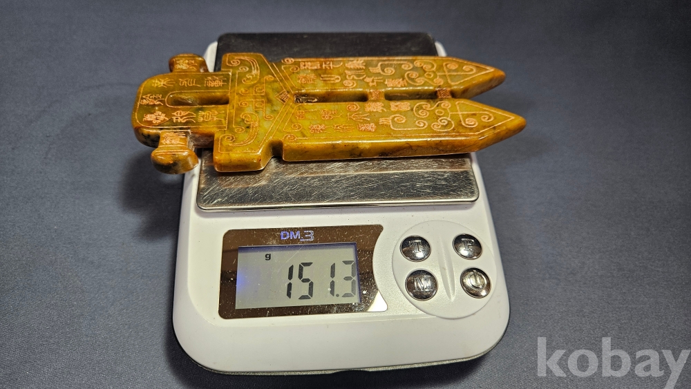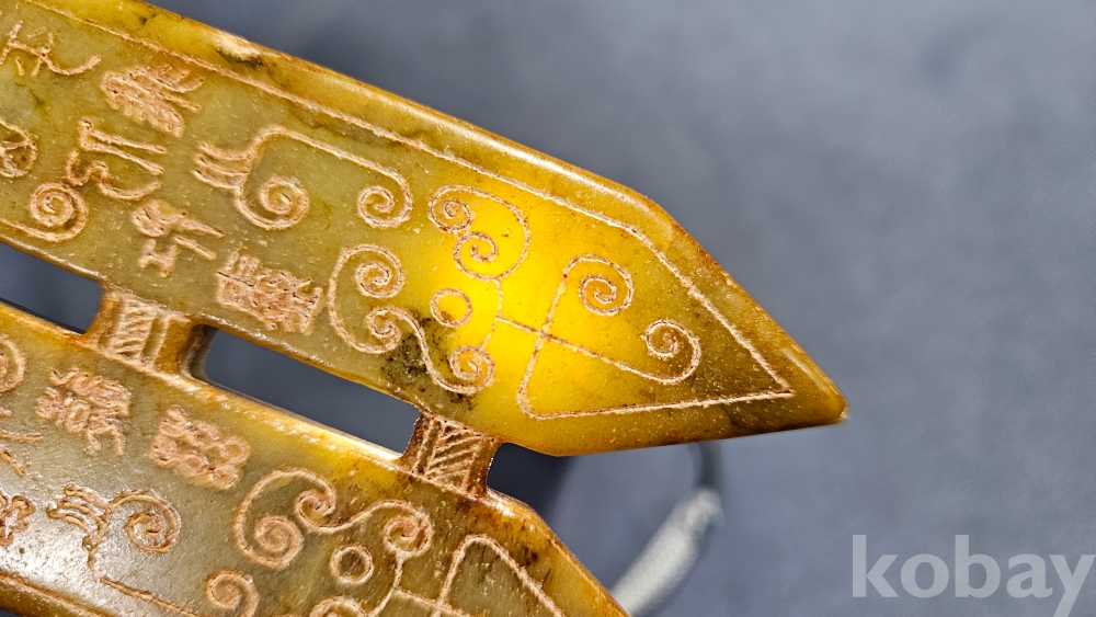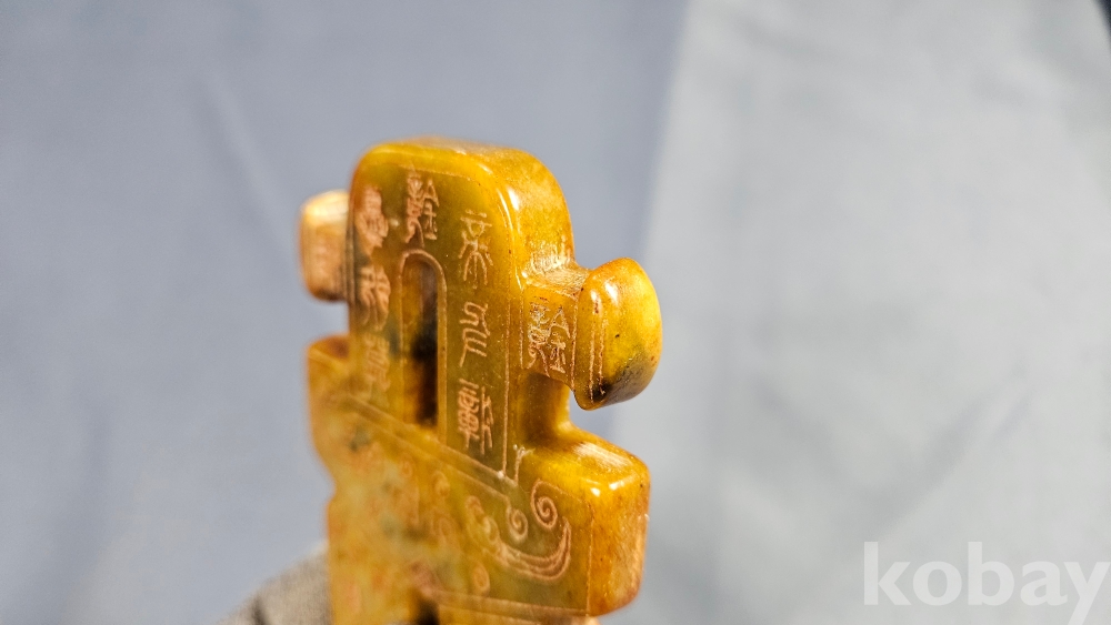 앞뒤로 특이한 문양이 새겨져있는 옥돌재질