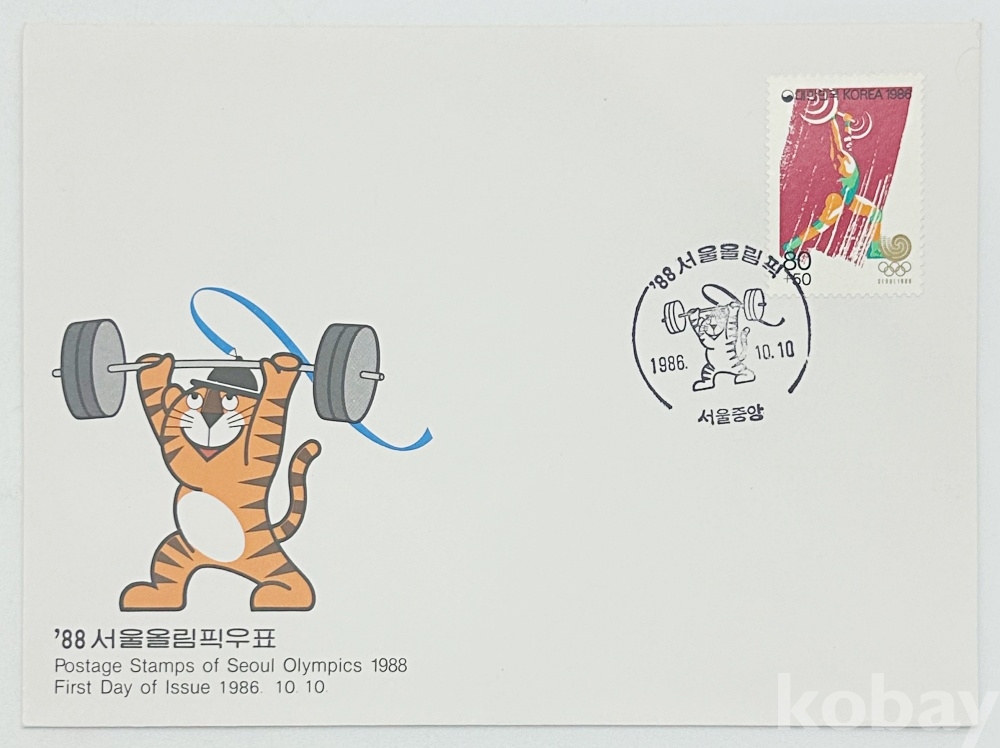 상품 설명 | 1986년 10월 10일 체신부에서 발행된 '88 서울 올림픽 역도 우표 초일봉투이다. 서울중앙 기념인. | ||