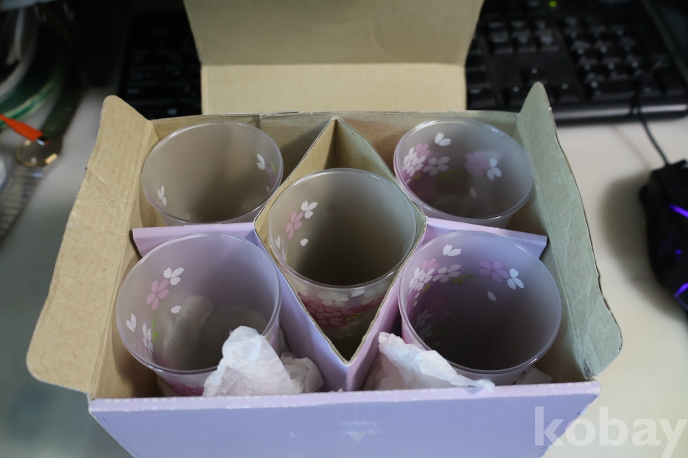 보라색감으로 유명한 우노의 명품 잔 5 세트 임니다 여성 특유의 섬세 우아한 명품 잔 세트 임니다 미사용 임니다 상자는 세월의 흔적이 보임니다