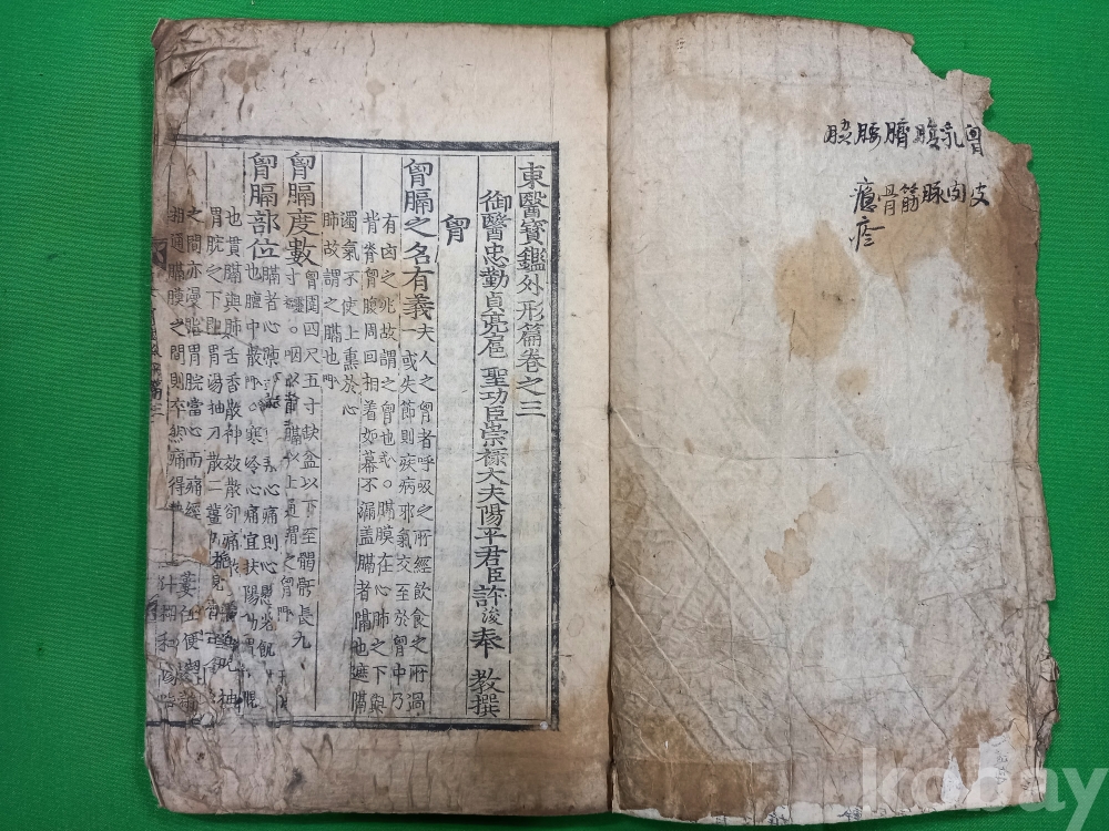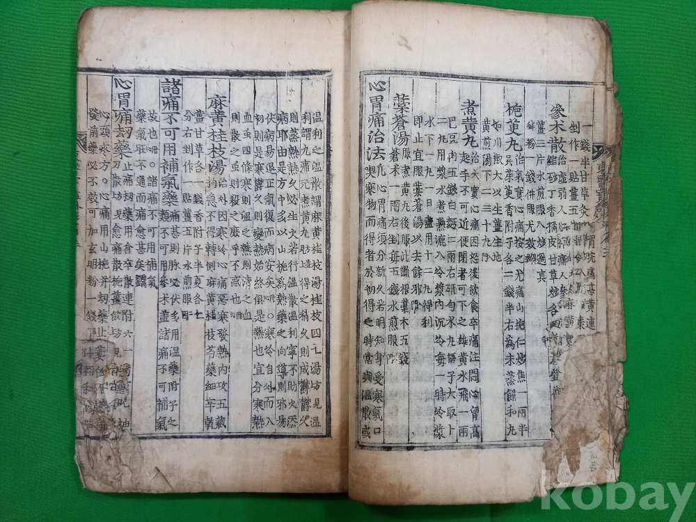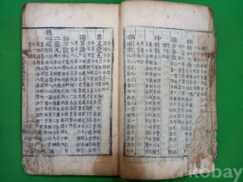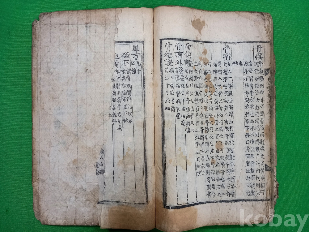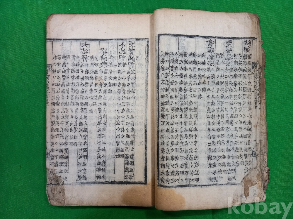 책 표지 좌측 상단 뜯김 있으며, 첫 장부터 내용 좌측 15장 정도 뜯김 있고, 책 마지막 장 반절 찢어짐 있습니다