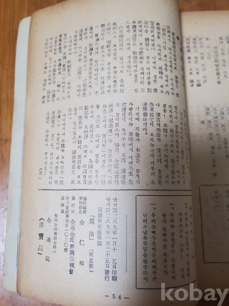 1. 가락(駕洛) 제5호, 김해김씨경남종친회, 1956년, 66쪽, 비매품, 상태 상, 사진 참조