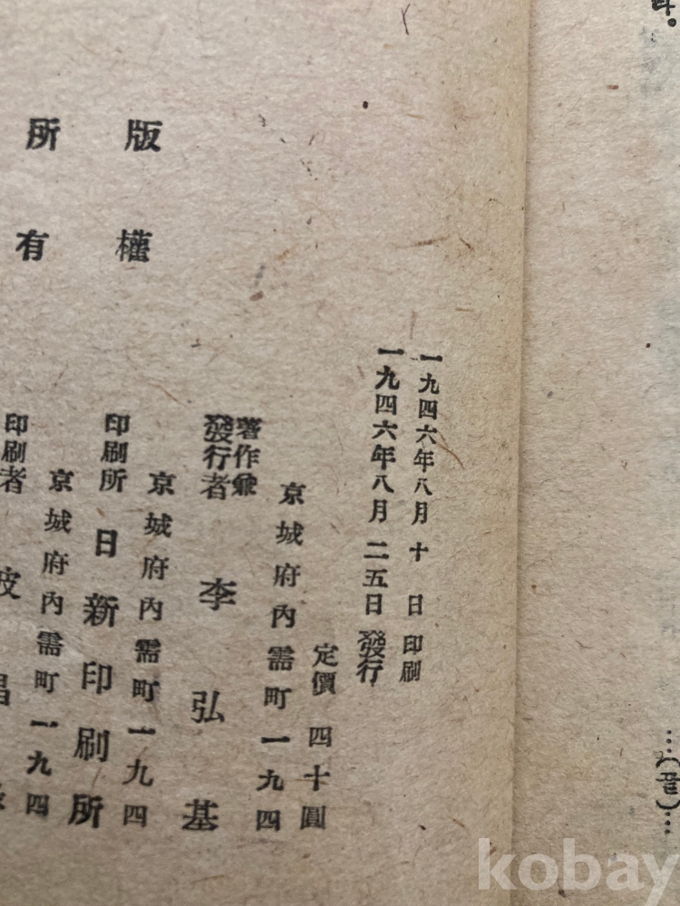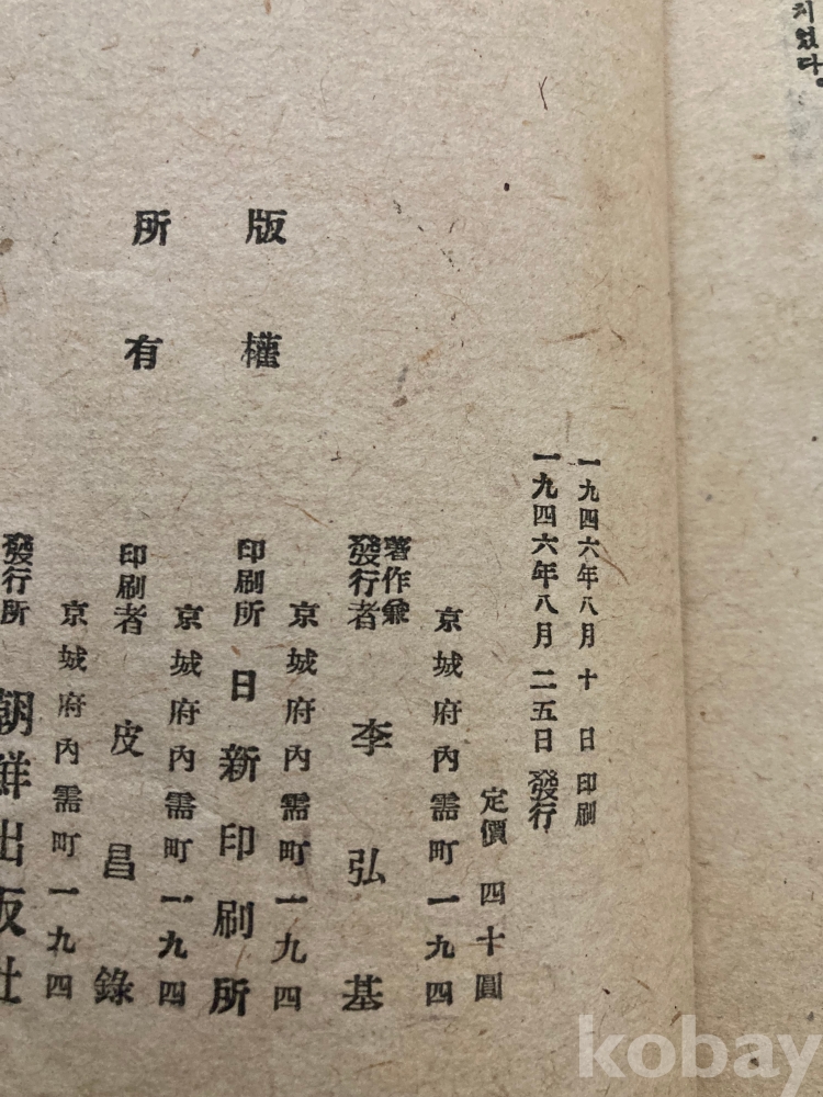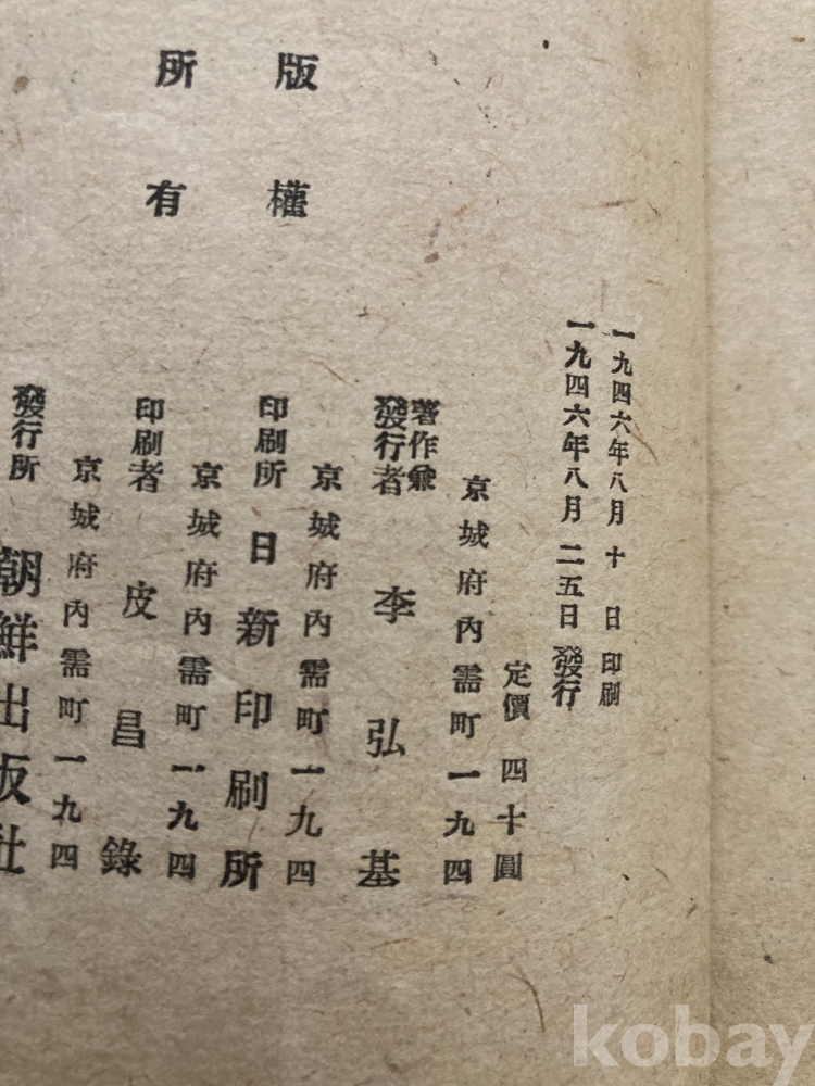 1944년 8월 10일 인쇄 / 1946년 8월 25일 발행으로 확인되며,