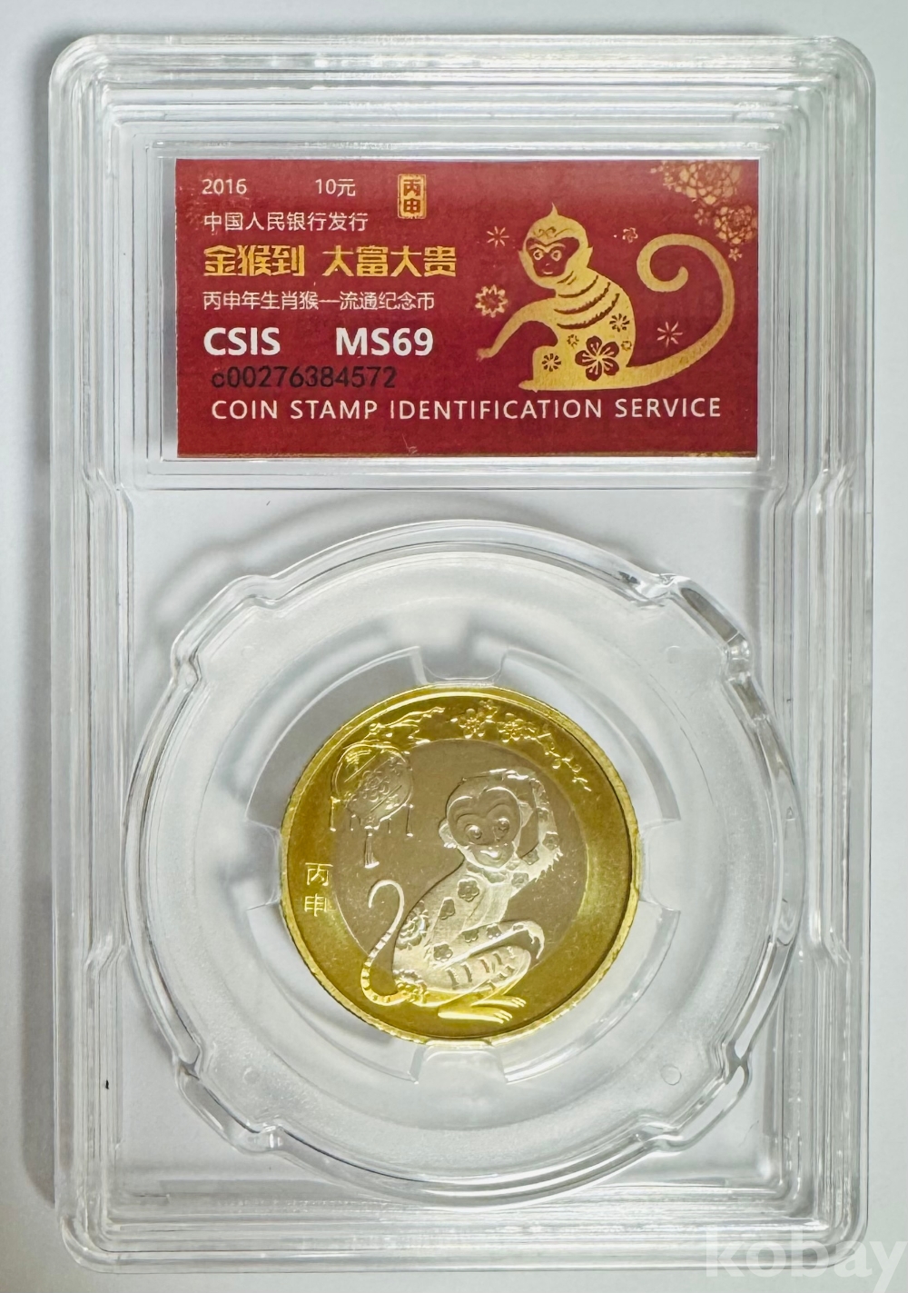 2016년 원숭이의 해 신년 기념 10위안 MS 69