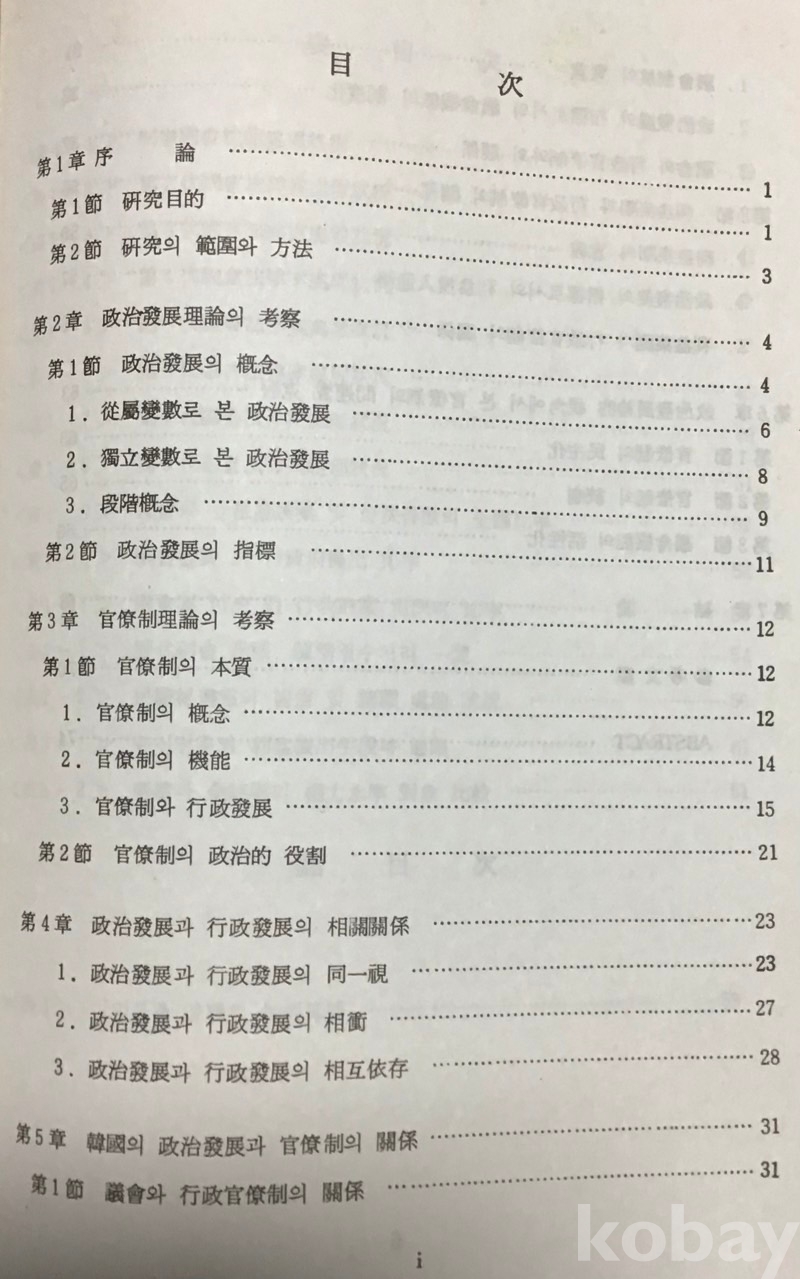 [X77] <<정치발전과 관료제의 상관관계에 관한 연구>> / 김영한 저, 중앙대학교 석사학위논문, 1987. 12. 초판