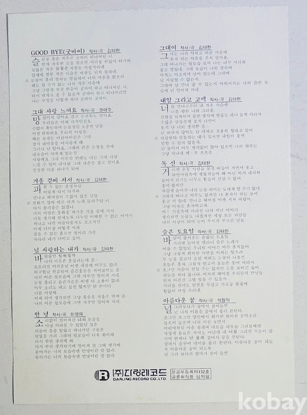 제작사: (주)달링레코드 (Darling Record Co., Ltd.)
