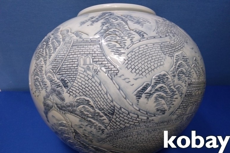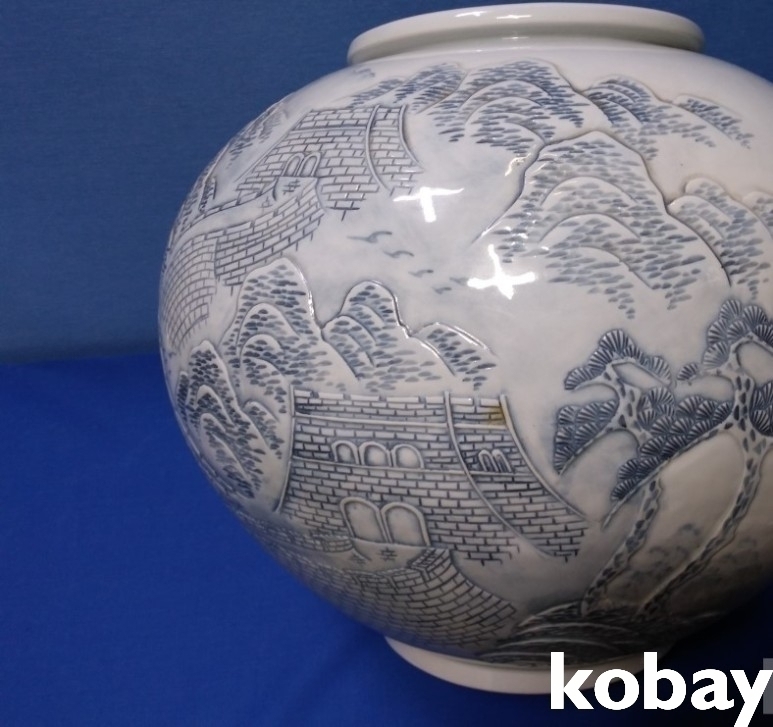 설경속에 산성 표현 도자기 입니다.