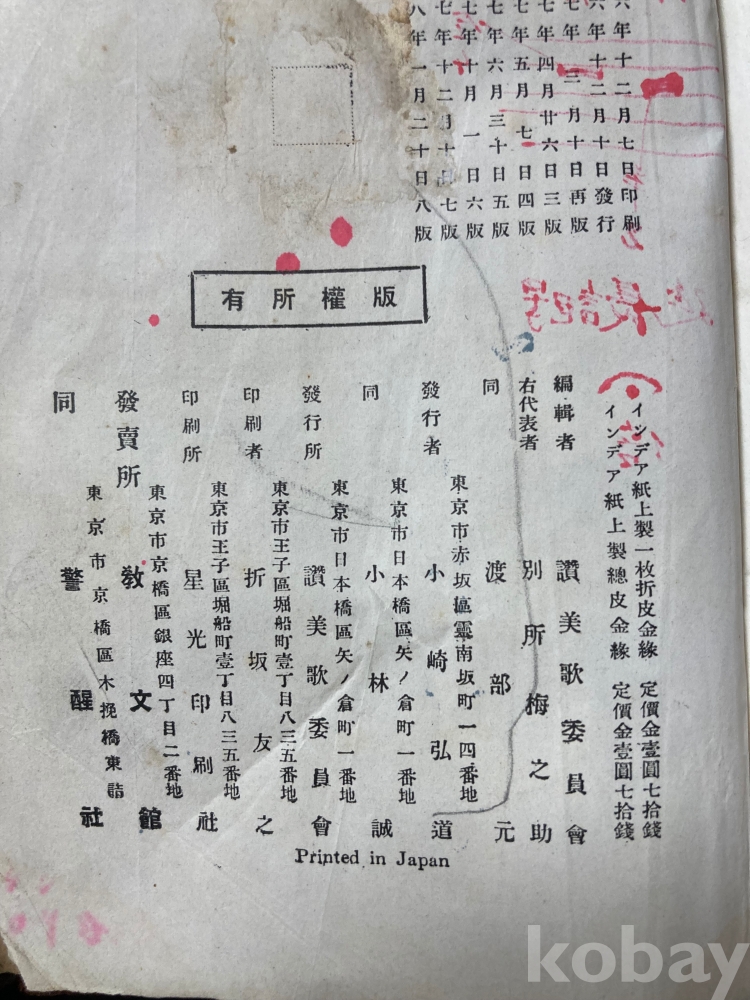 • 발행처: 일본 도쿄 찬미가위원회(교문관, 성서공사 등 공동발행)