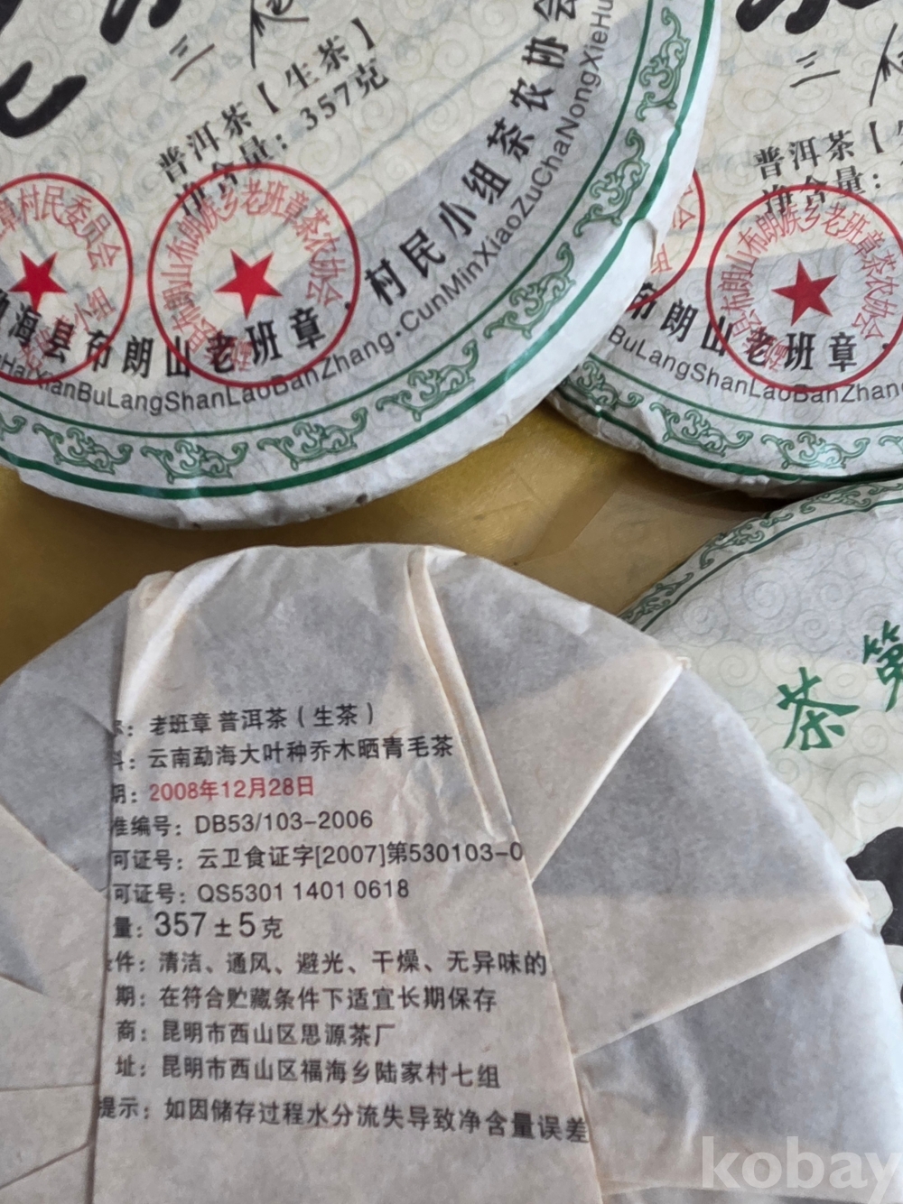 명품보이차(생차)4편 일괄ㆍ노반장 보이차 357g