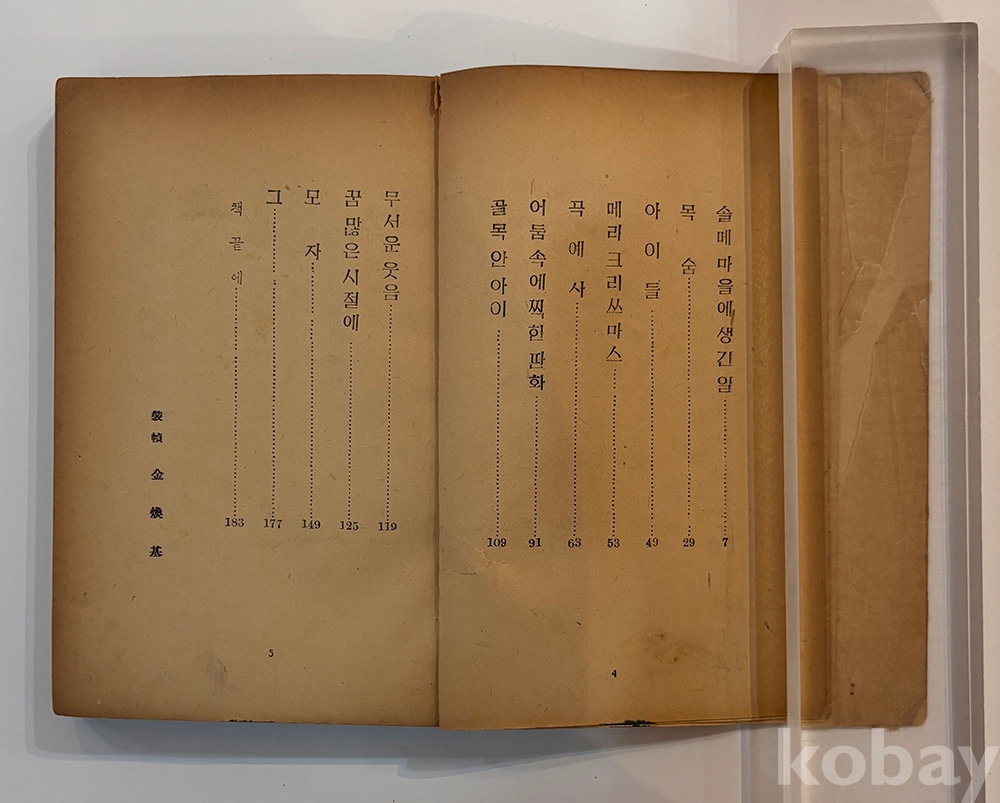 설 명 | 6.25전쟁기 부산 지역으로 피란하였던 경험을 살려 소설가 황순원이 1951년에 창작하여 『문예』에 발표한 소설 [곡예사(曲藝師)] 700부 한정판 1책이다. 장정은 김환기가 맡았다. 본문과 뒷표지 분리되어 있고 책등 상태 불량하다. 표지 오염 등 실물 확인이 필요하다. | |||||