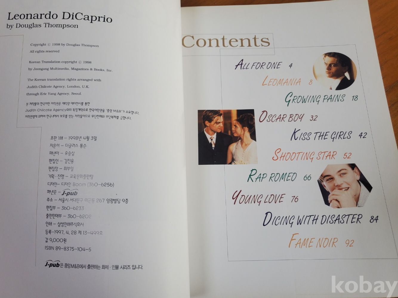 1. 네오나르도 디카프리오, 더글러스 톰슨, J-pub, 1998년, 96쪽, 상태 상, 사진 참조