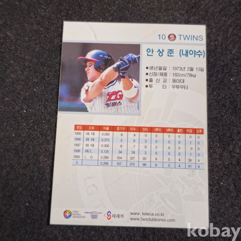 (((프로야구자료))) 1999년 엘지트윈스 내야수 안상준 스포츠 카드 (KBO/TELECA) (친필싸인카드)
