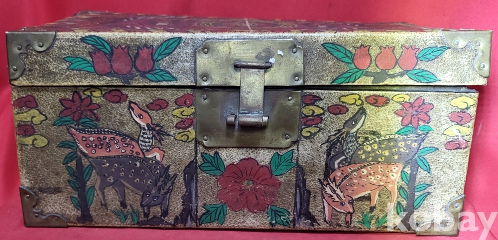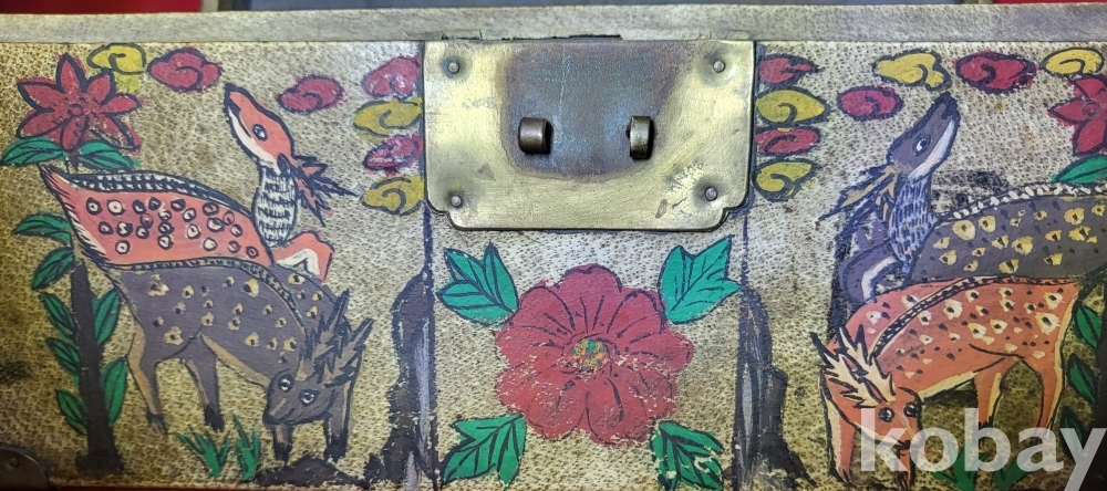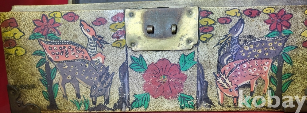 전면에는 4마리의 사슴이 꽃과 식물이 어우러진 도안입니다,