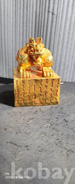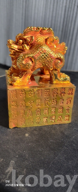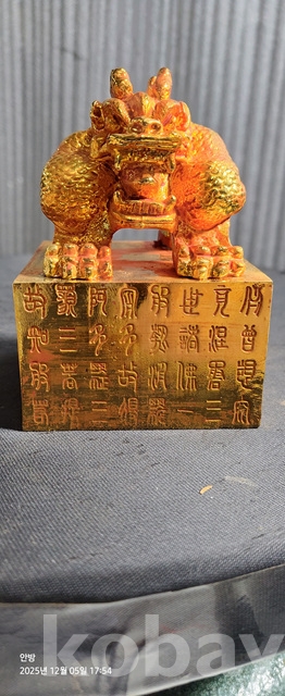 b-88.엄청무거운 사면에 글씨기있는 금도금 용문양옥새
