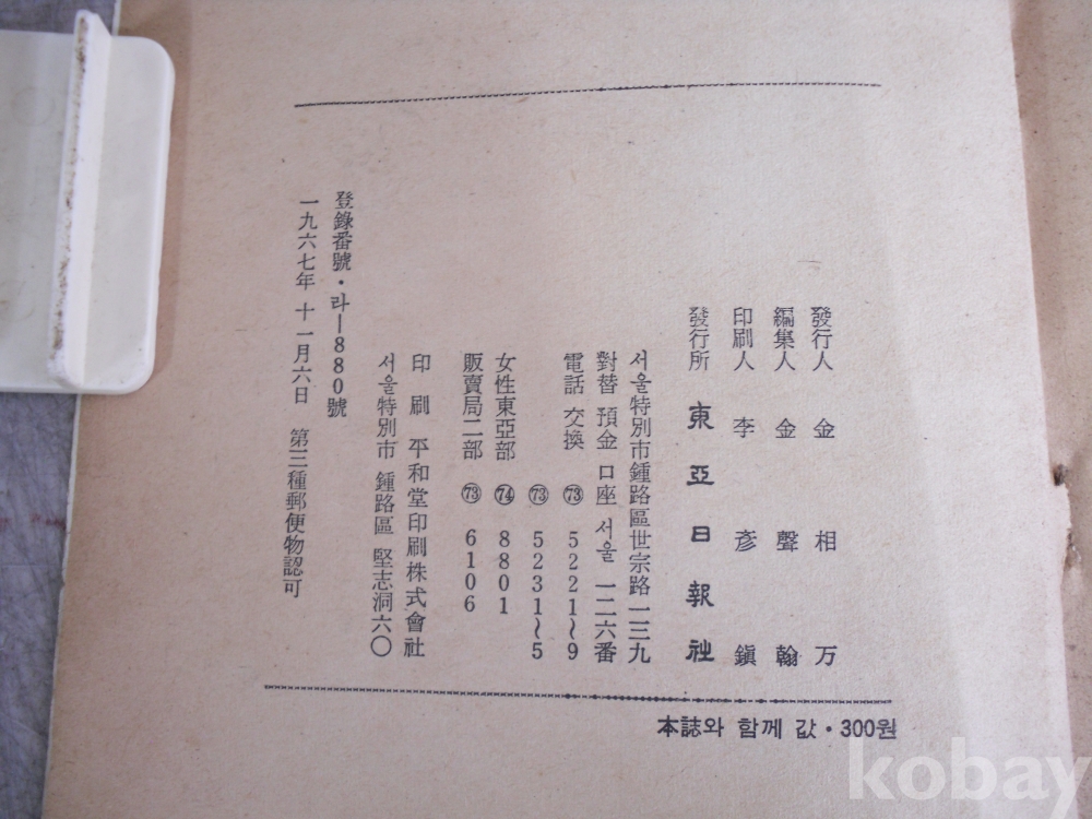 1967년 여성동아 별책부록 동서유며선집입니다.