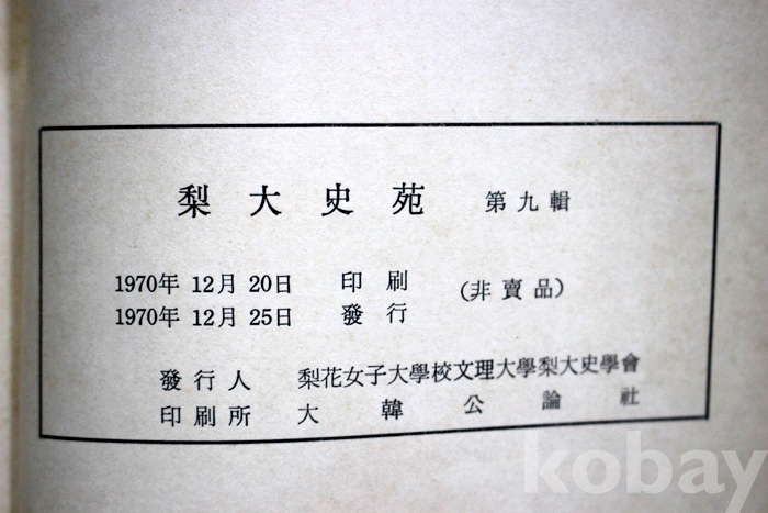 梨大史苑 (이대사원) 제9집 - 1970년 / 이대사학회 발행