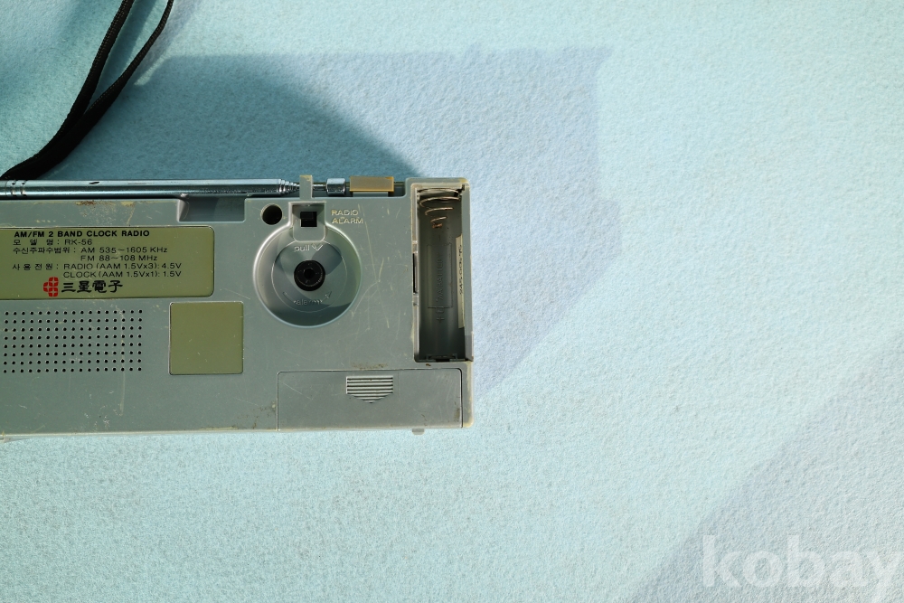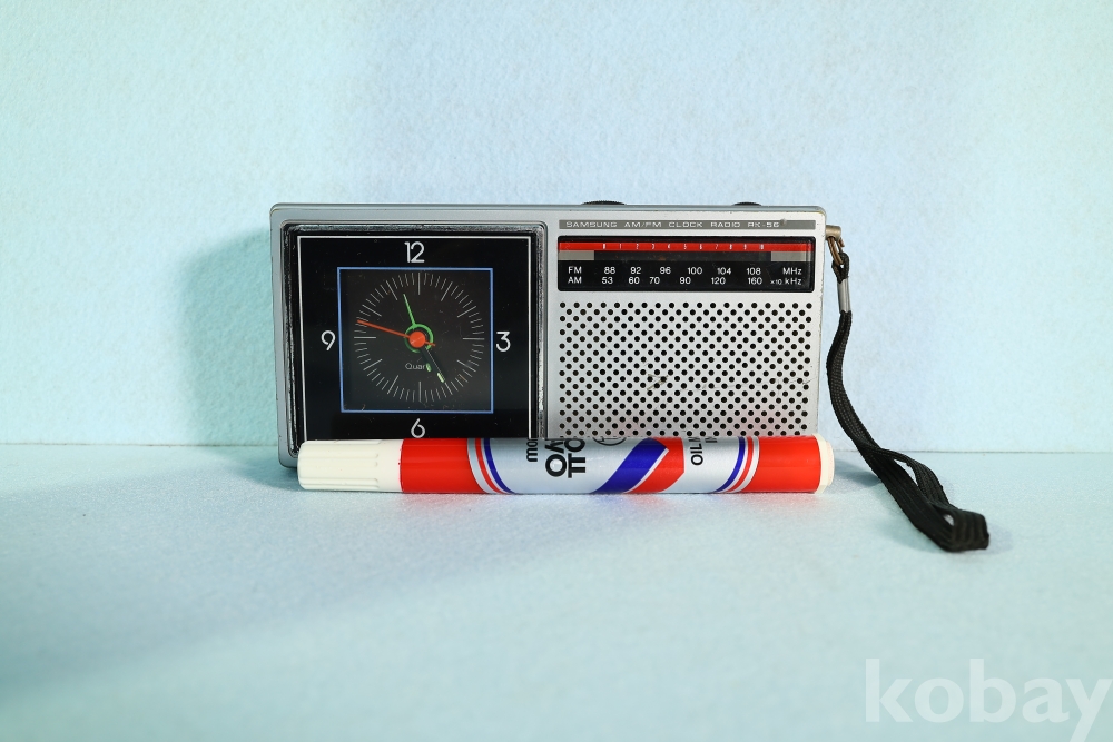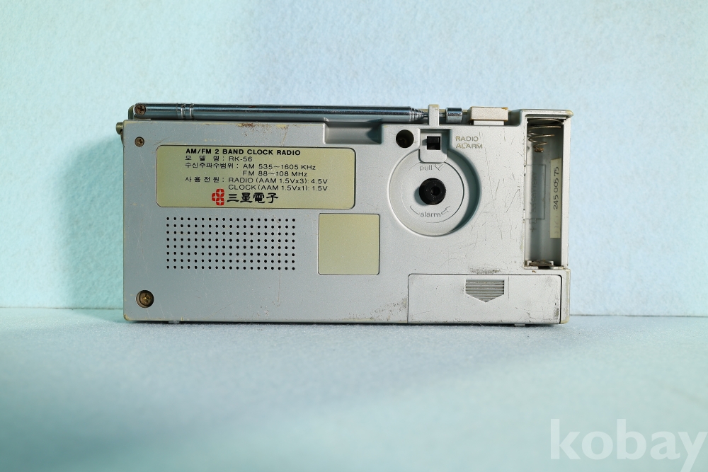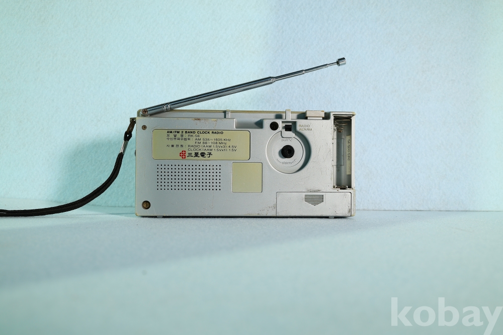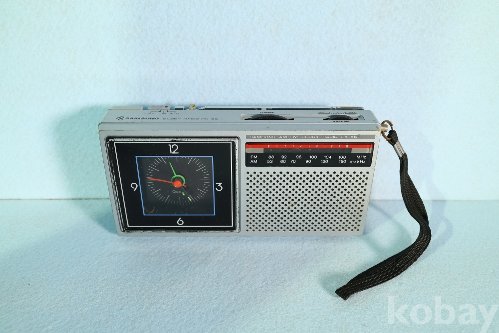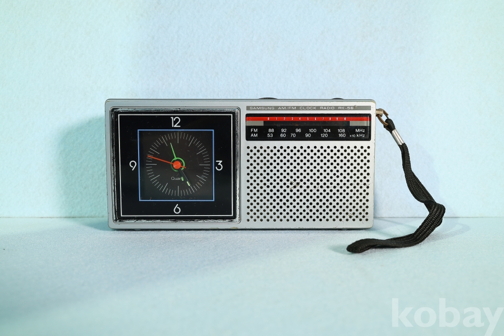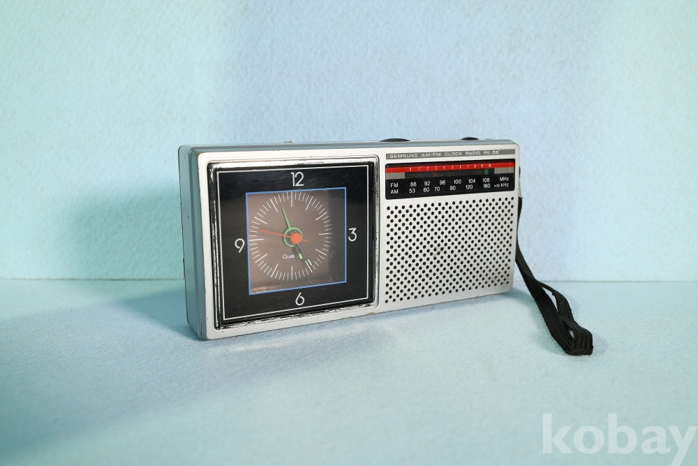 삼성전자의 아날로그 미학이 돋보이는 휴대용 클락 라디오 RK-56 모델입니다.