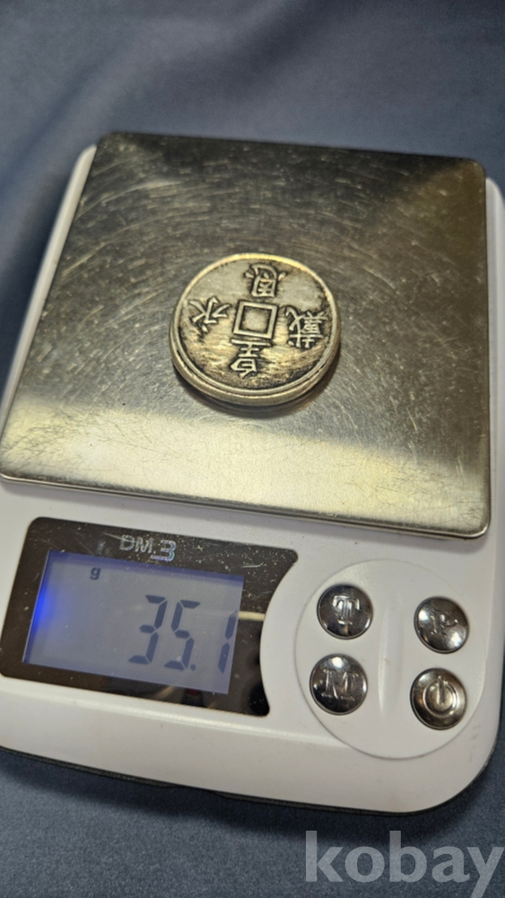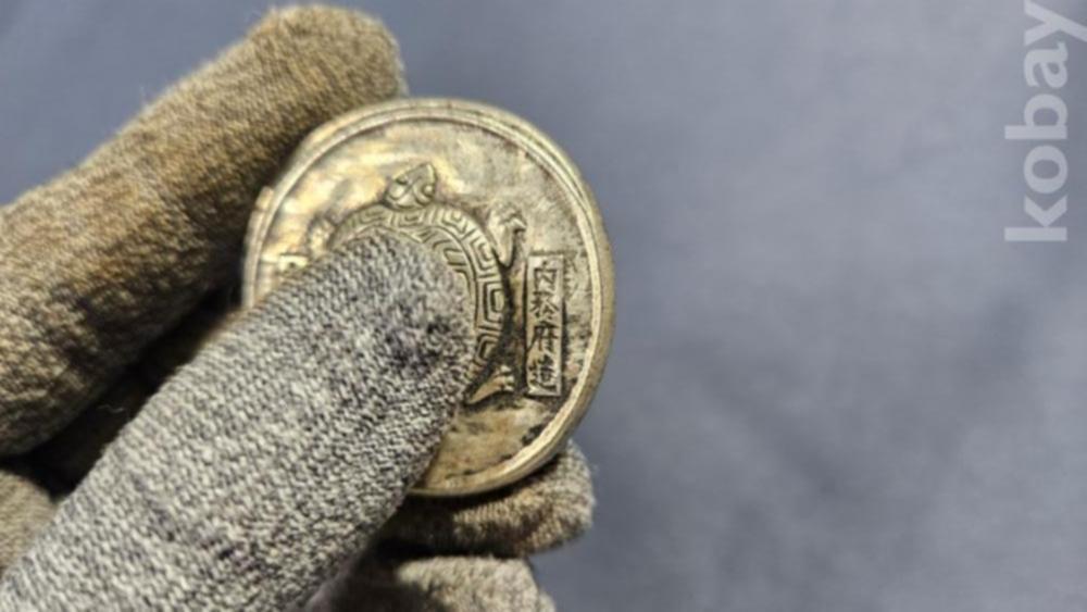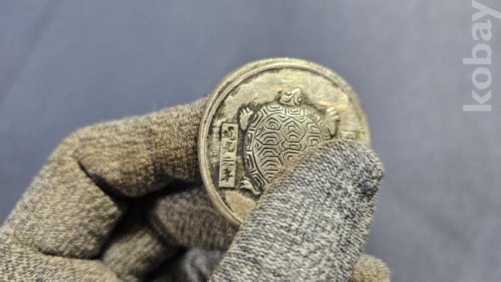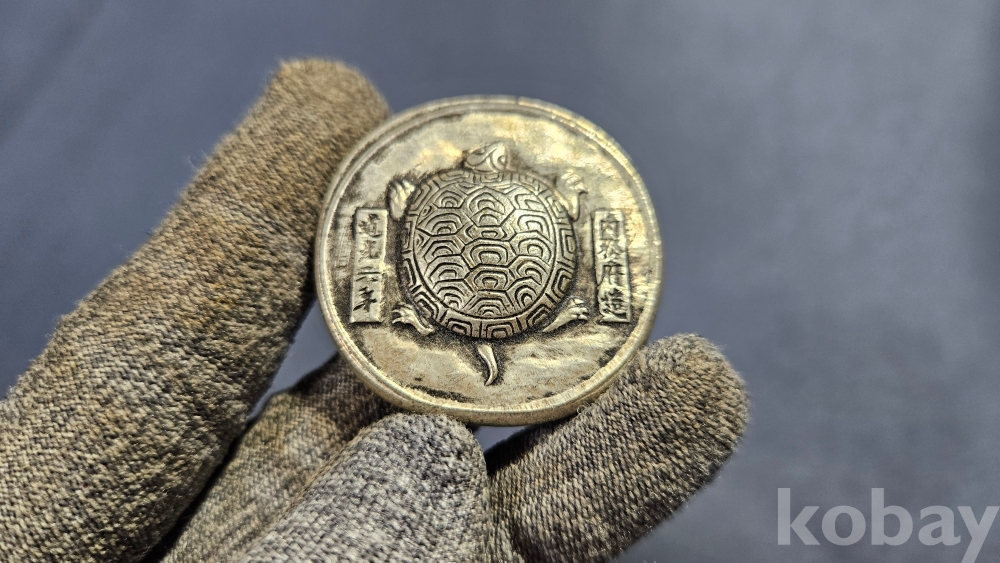 자라문양이 양각으로 들어있는 은색 주화입니다.