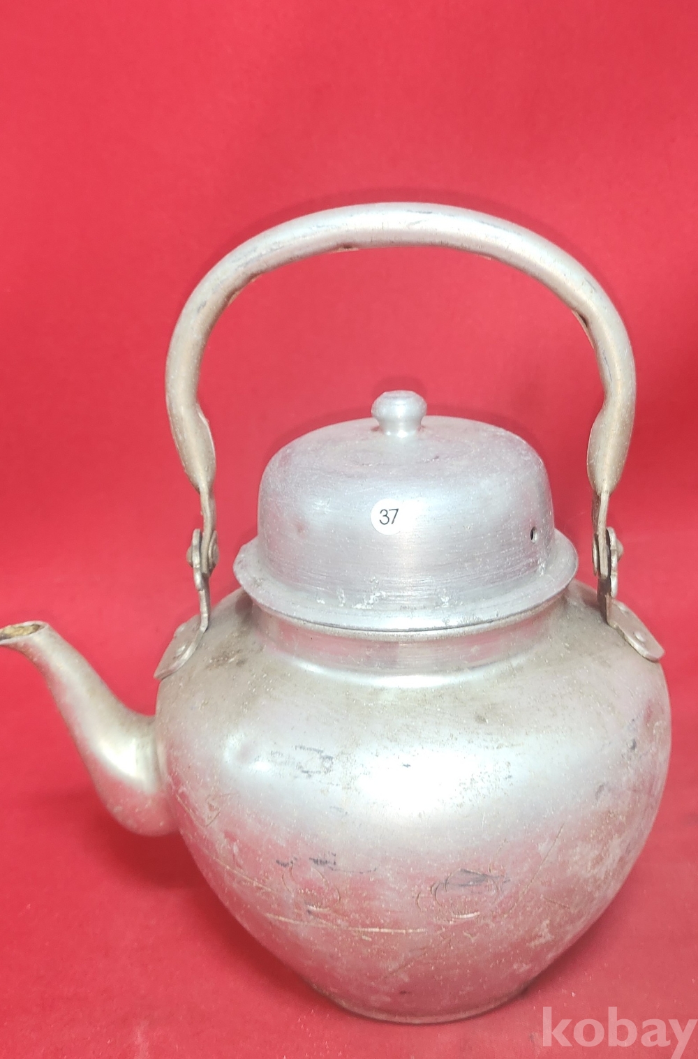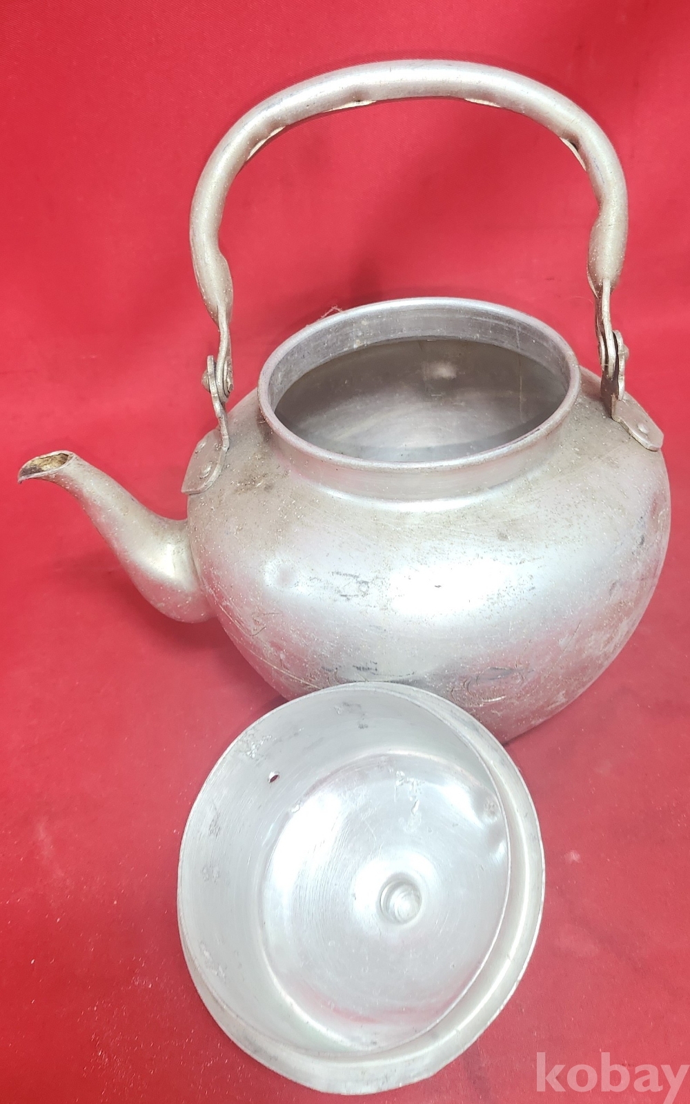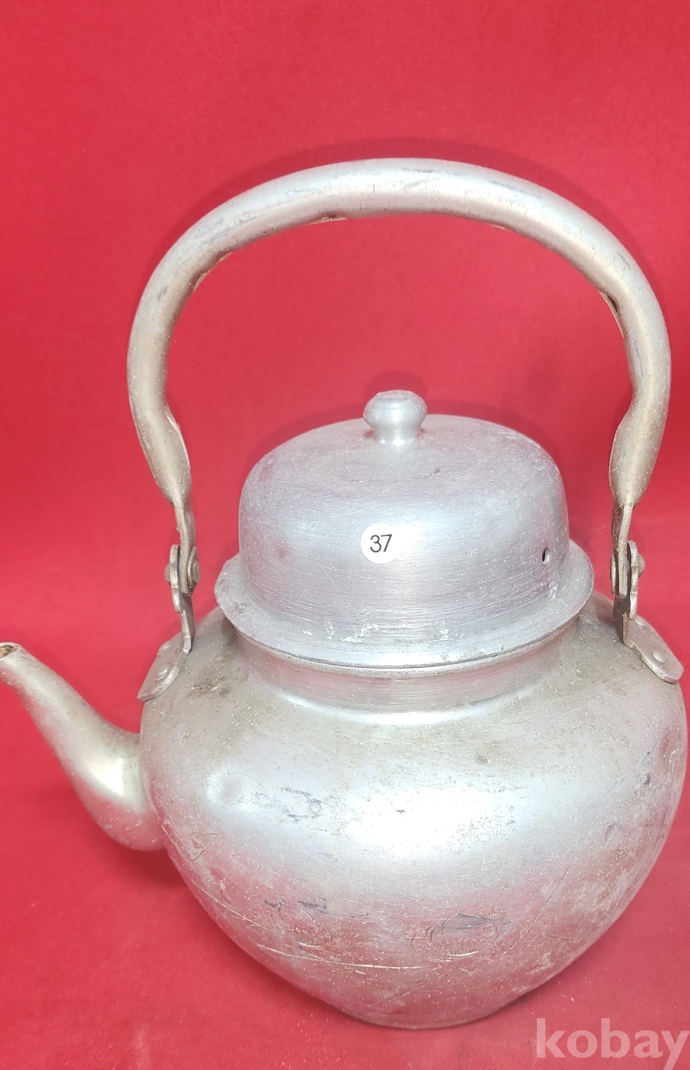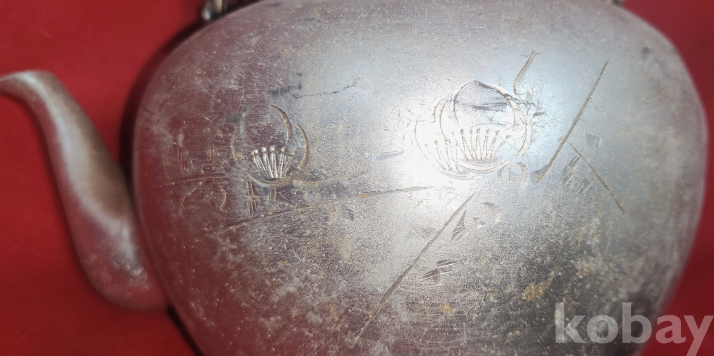 짱짱한 연대 보이는 알루미늄 이화 문양 주전자입니다,