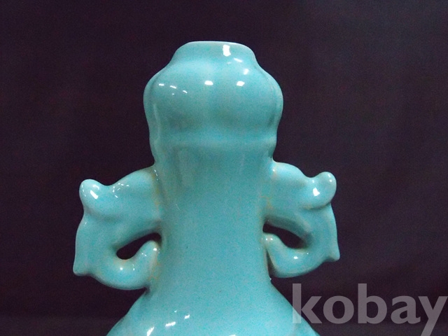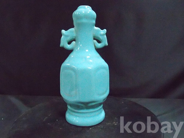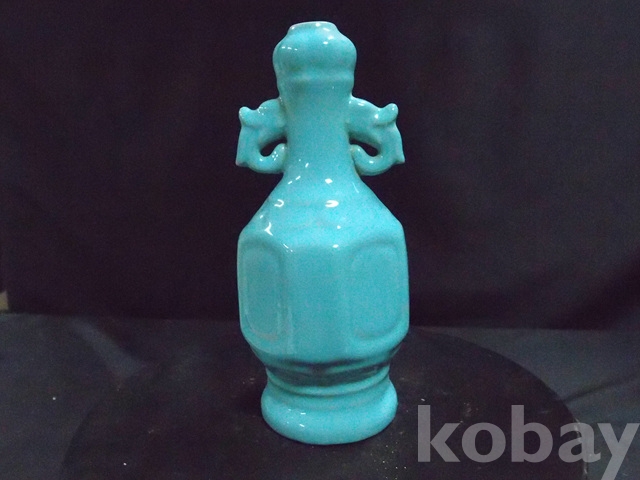 p-51.발색이깔끔함한 중국5대도자기중하나귀달린육각 여요 화병