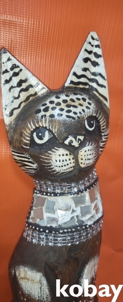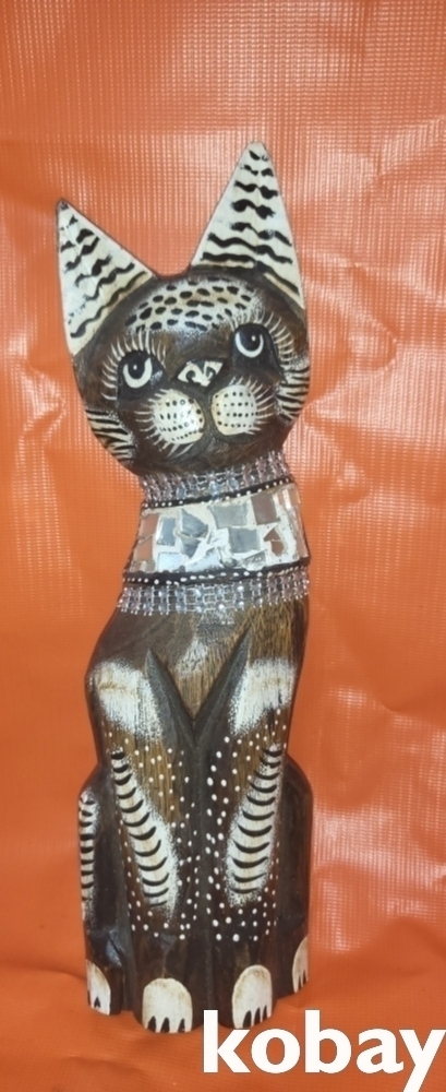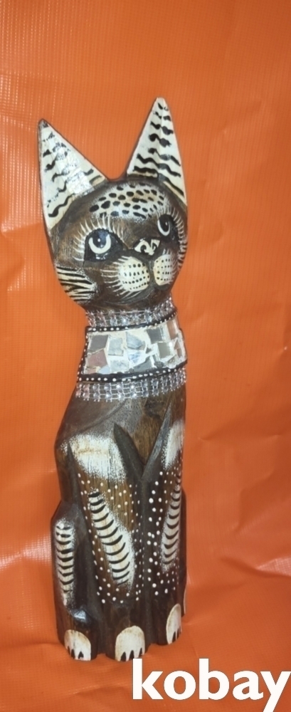 나무로 완성된 고양이 동물상 목조각품입니다,