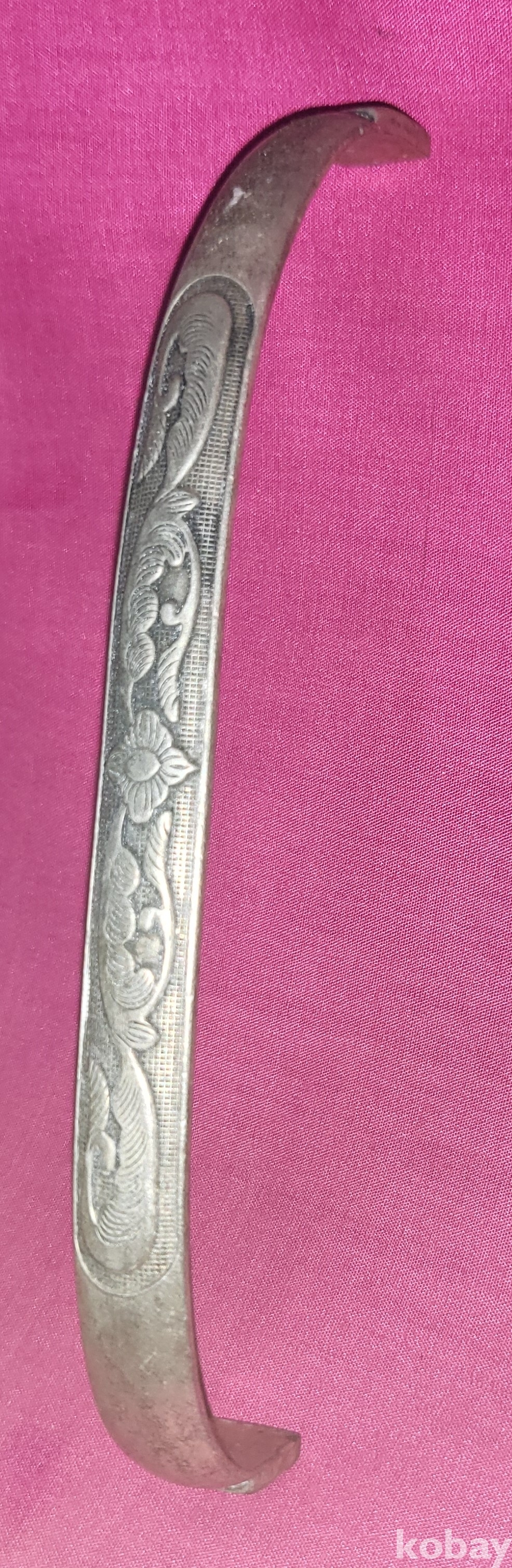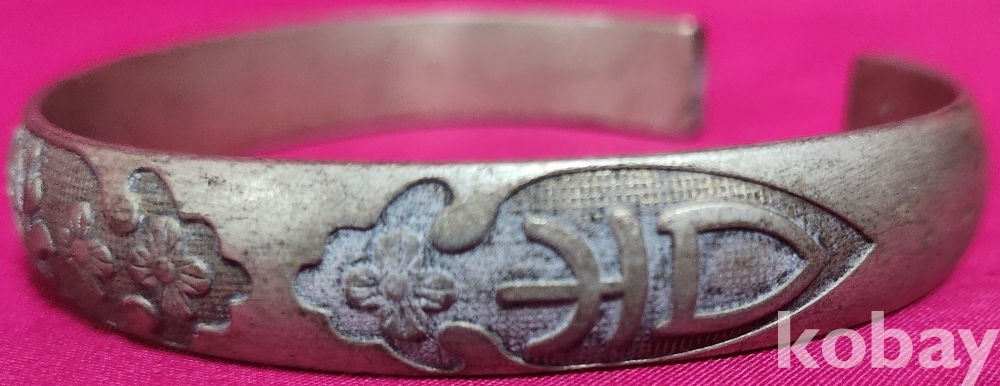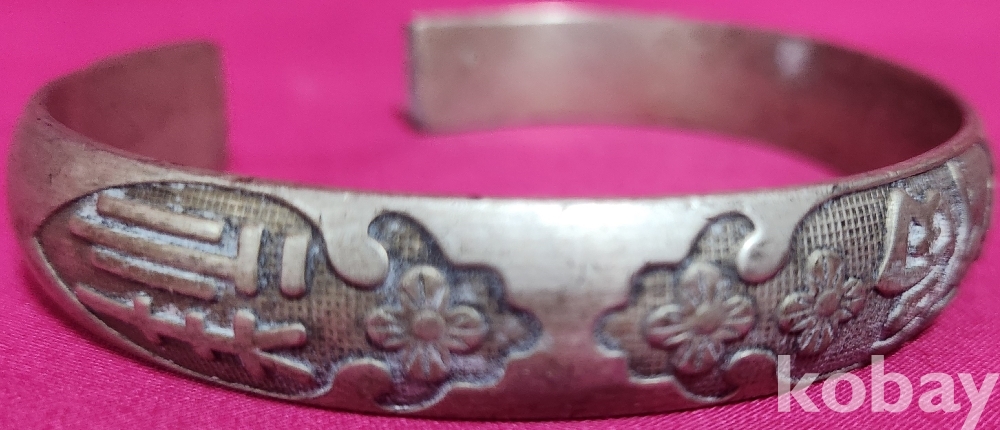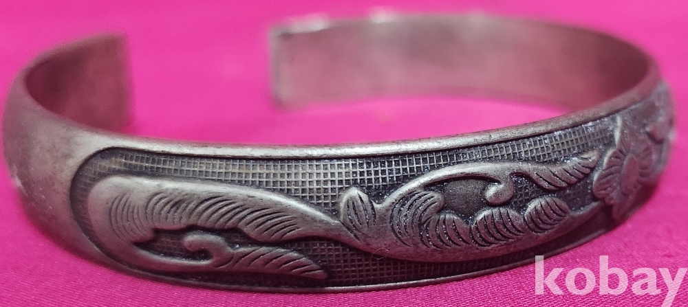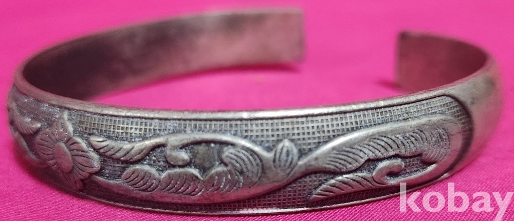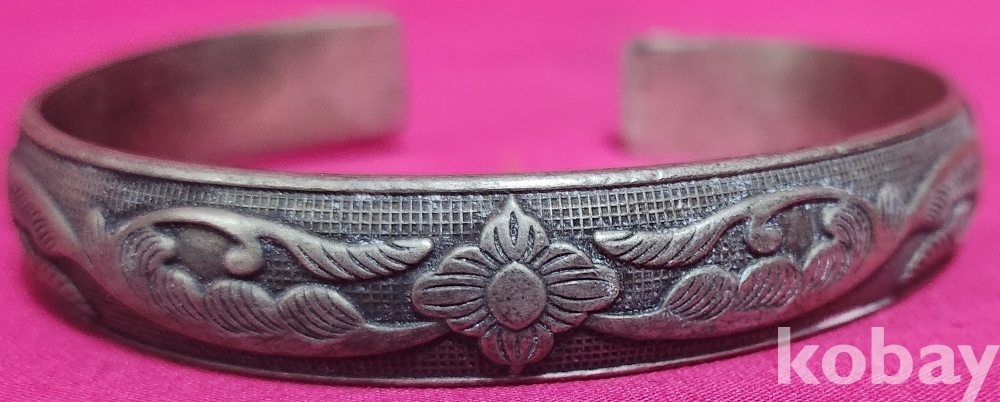 꽃(花) 문양이며 갱엿처럼 변형이 자유로운 은색 팔지입니다,
