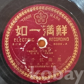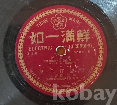 이 음반, 이거 그냥 보아넘길 음반이 아니지 않는가? 그래서 본김에 기를 쓰고 달라들어 낙찰을 받았고.. 판매자도 이 음반이 범상치 않음을 강조하였지요. 일제강점기에 조선과 만주를 완전히 식민지 통합코져 내세운 표어? 구호? 鮮滿一如, 혹은 內鮮一體로 우리민족에게는 역사의 가슴아픈 사연을 지닌 자료로 아주 희귀한 음반입니다. 그때 당시 그들의 음침한 야욕과 만행을 온몸으로 체험한 사람들 누가 모르는이 없었다 해도 지금은 어디 그런가요? 이런게 있었는지도 모르지요. 아- 세월이 참 무정해선가? 아무도 찿는 것 같지도 않고 아니 찿는 것은 고사하고 아는 것 같지도 않고.. 까맣게 잊혀지고 있는것 같아.. 후세를 사는 우리가 반드시 기억하고 새겨야겠지. 그리곤 다음 세대로 넘겨줘야 하고.. 다시는 이런 슬픈 역사가 되풀이되지 않도록.. 사료적 가치가 충분한 것으로 음반의 상태 등을 떠나 한장 소장한다는것은 이제는 거의 행운일것입니다.