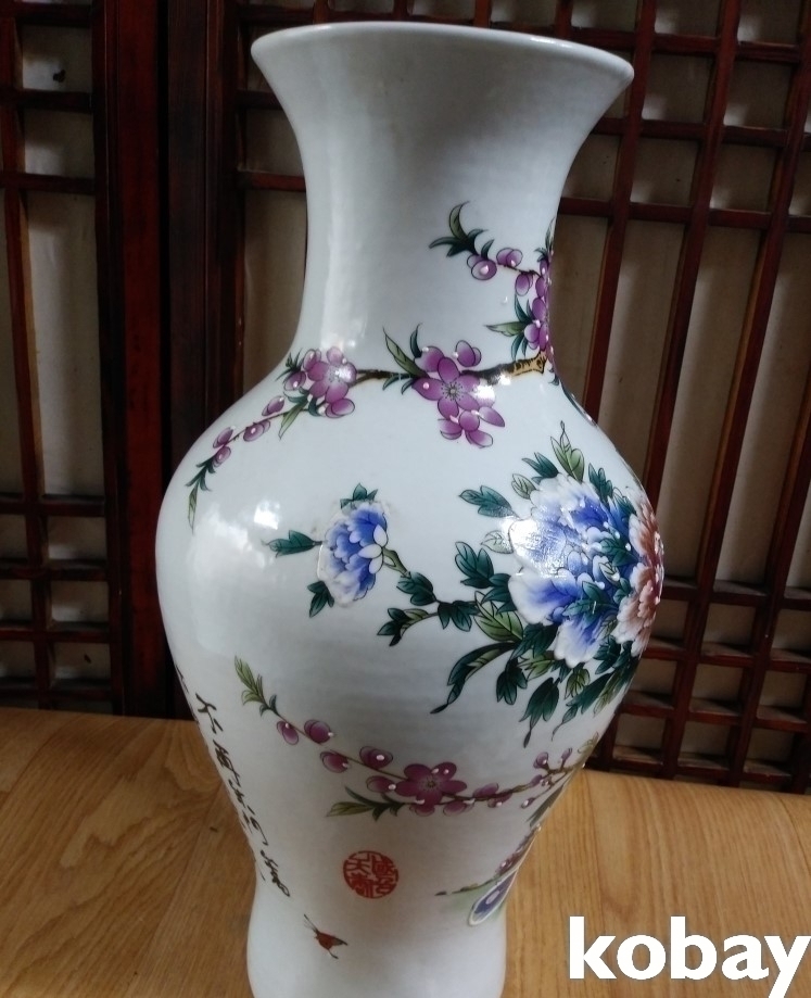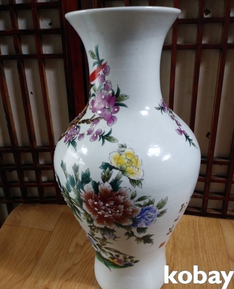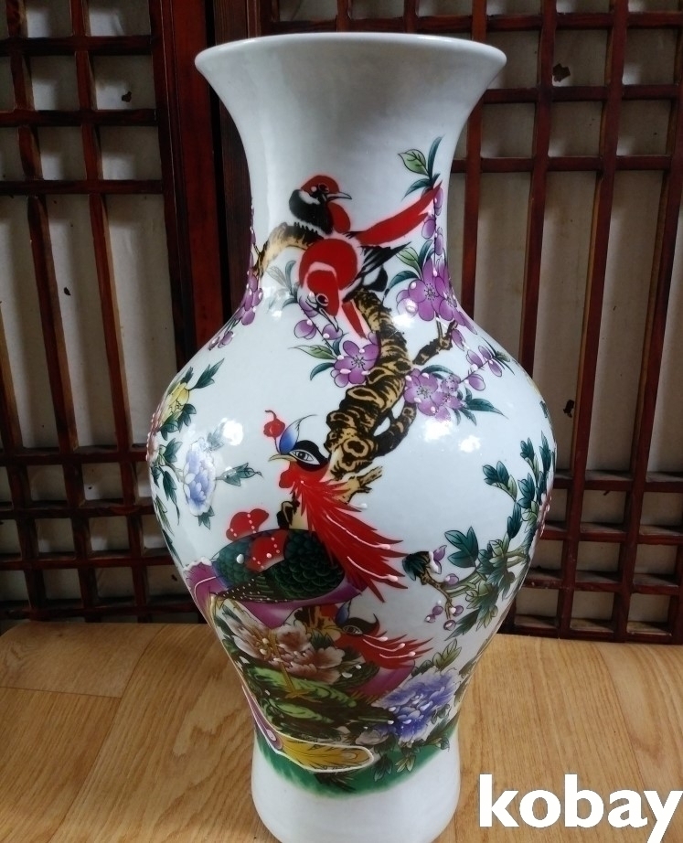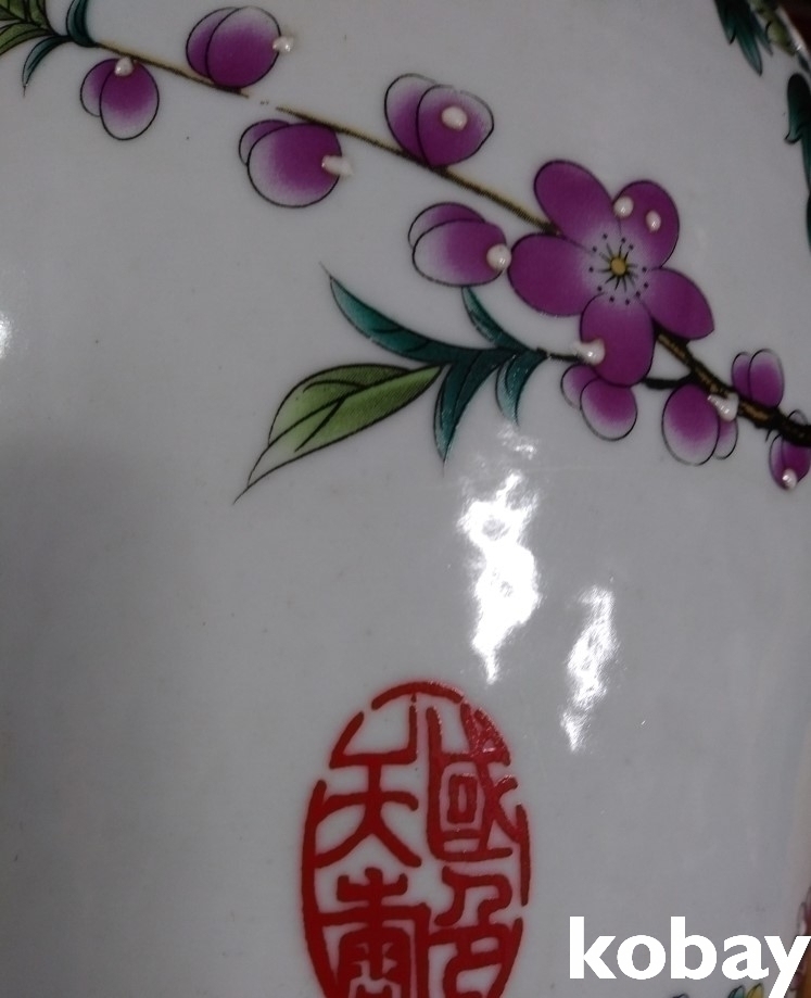 매화 꽃 나무와 화려한 새들의 모습이 화려합니다.