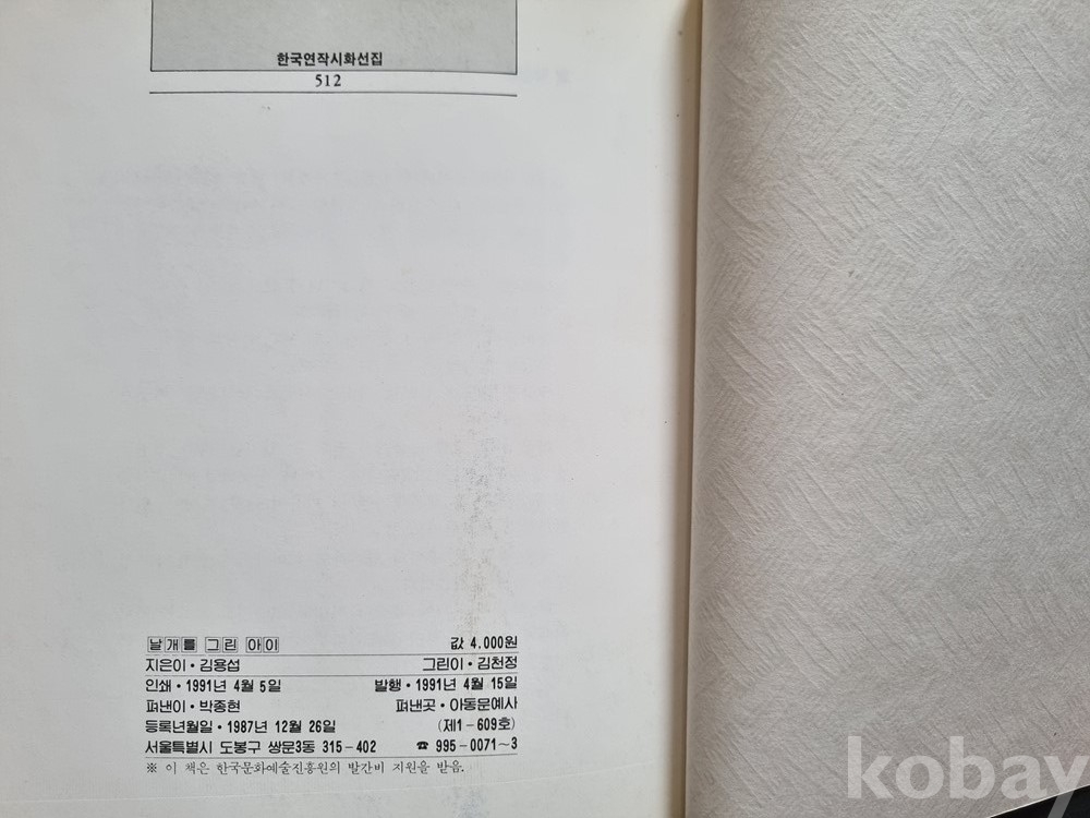 도서명: 날개를 그린 아이 (한국연작시화선집 512)