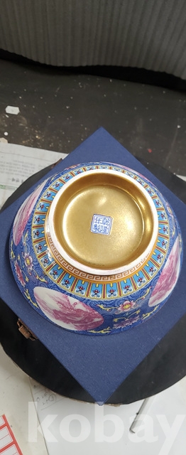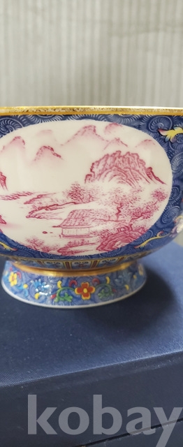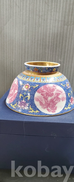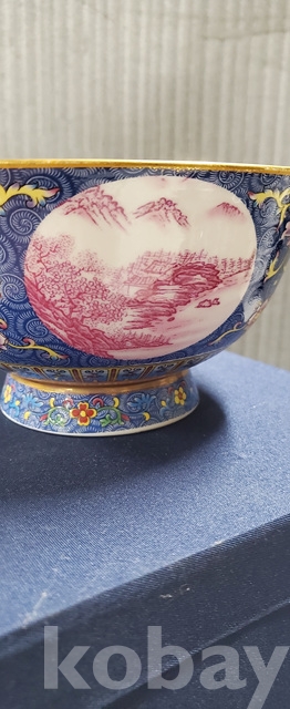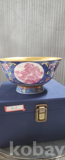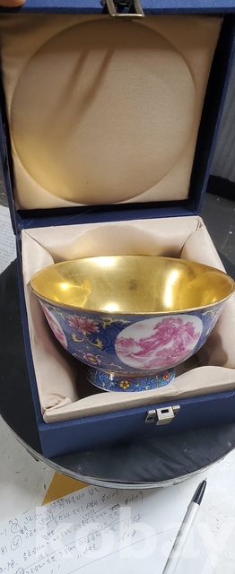 a-25.고급상자에담긴 건륭년제 오래된 산수문 금채황실도자기사발