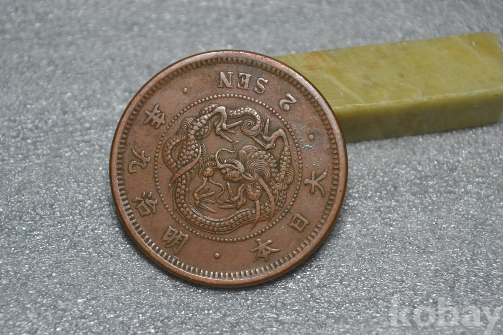 ㅡ> 100년 넘는 오래된 명치9년도(1876년도) 일본 대형 용 2전청동화 입니다.
