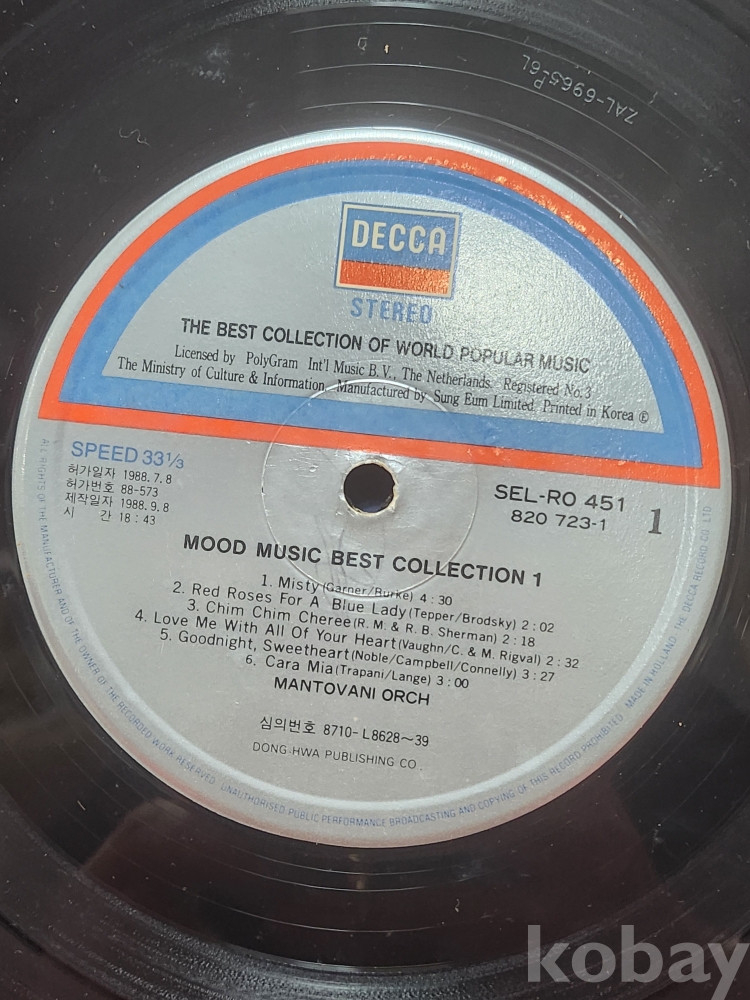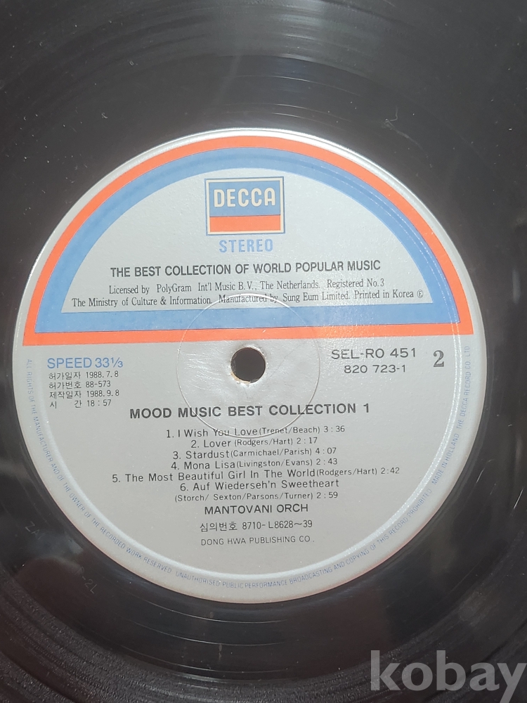 무드뮤직(Mood Nuic)1988년 동아출판공사 한글표기 엘피판입니다,
