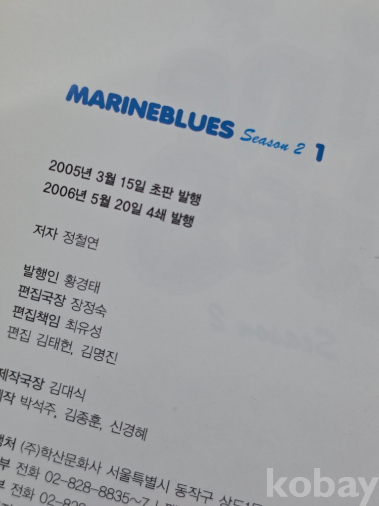 (((만화))) 마린 블루스 (Marine Blues) Season 2 1 ~2권 (완관) 정철연 글/그림 (2006년 초판 4쇄)