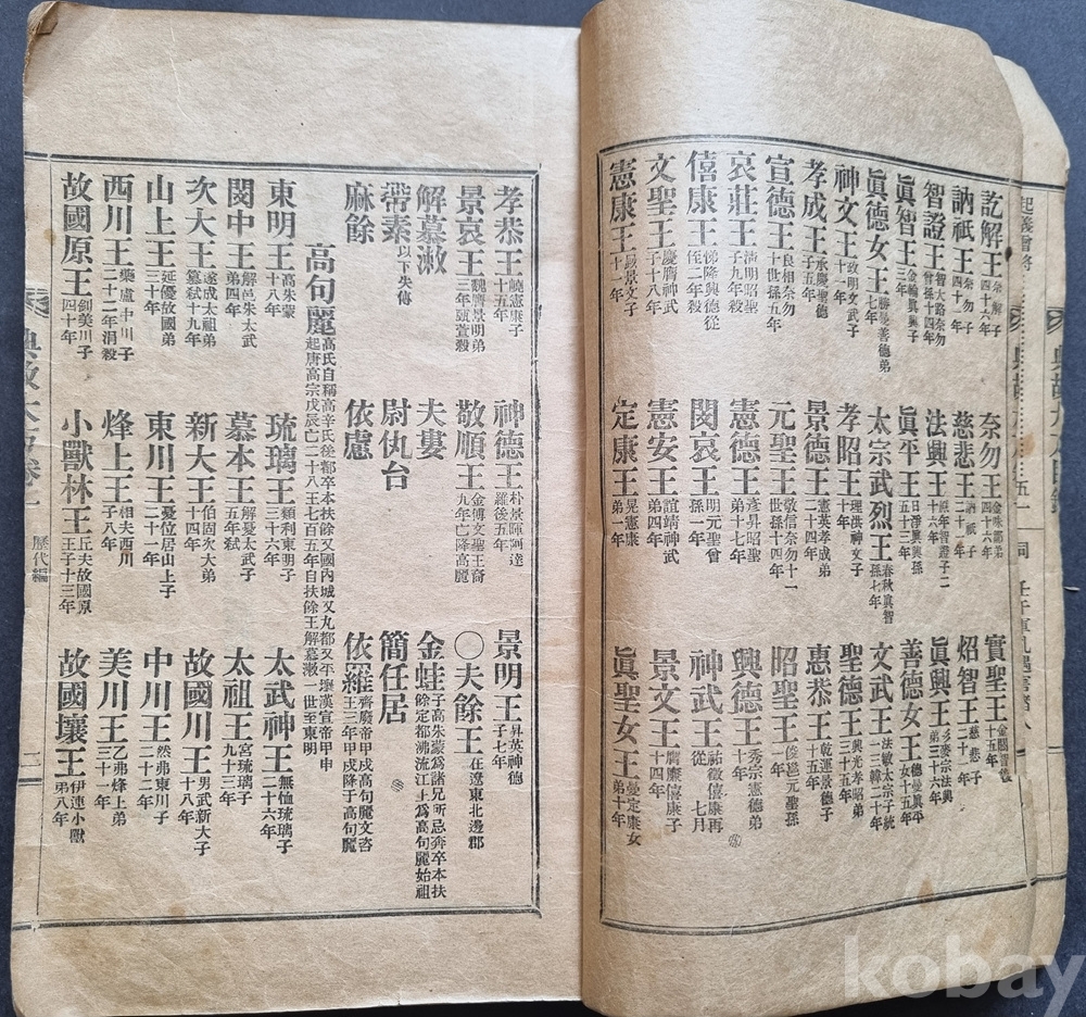내용 구성: * 역대 편(歷代編): 단군조선부터 조선 시대까지의 역대 왕계도.