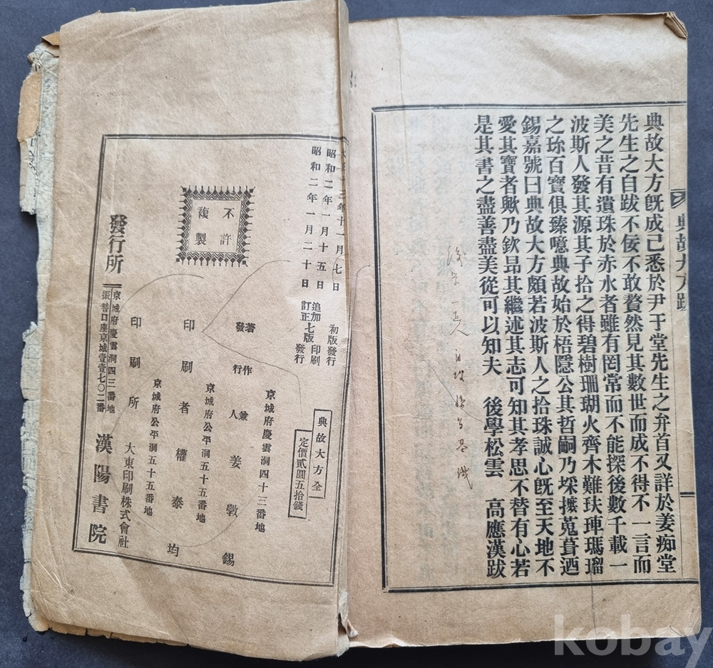 발행 시기: 소화(昭和) 2년(1927년) 1월 발행 (사진 속 판권지 근거)